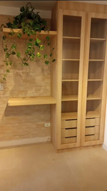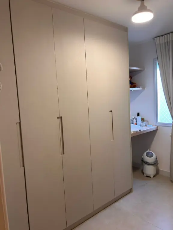 O imóvel conta com armários planejados recentes, bem distribuídos nos dormitórios, proporcionando organização e melhor aproveitamento dos espaços. A cozinha também se destaca, com marcenaria planejada integrada à lavanderia, trazendo praticidade ao dia a dia. Na sala, um detalhe charmoso: um armário com estilo cristaleira que complementa o ambiente de forma acolhedora.