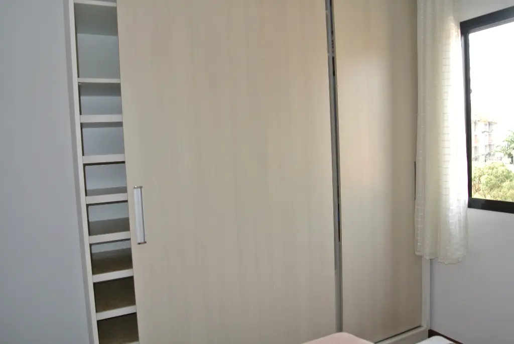 Este imóvel conta com dois quartos, sendo um suíte, dois banheiros, uma sala ampla e duas vagas de garagem. O apartamento está totalmente mobiliado, proporcionando praticidade e conforto desde o primeiro dia.