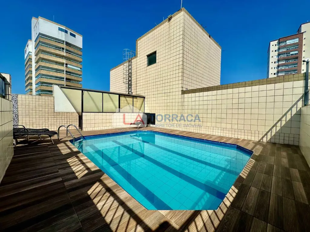 Referência 15767 - Apartamento Mobiliado, com 2 dormitório, sendo 1 Suíte, sala, sacada, cozinha, 2 banheiros, lavabo. Prédio com elevador, piscina, churrasqueira, espaço gourmet, gás encanado, direito a 2 vagas de garagem. Excelente localização no bairro da Aviação em Praia Grande!