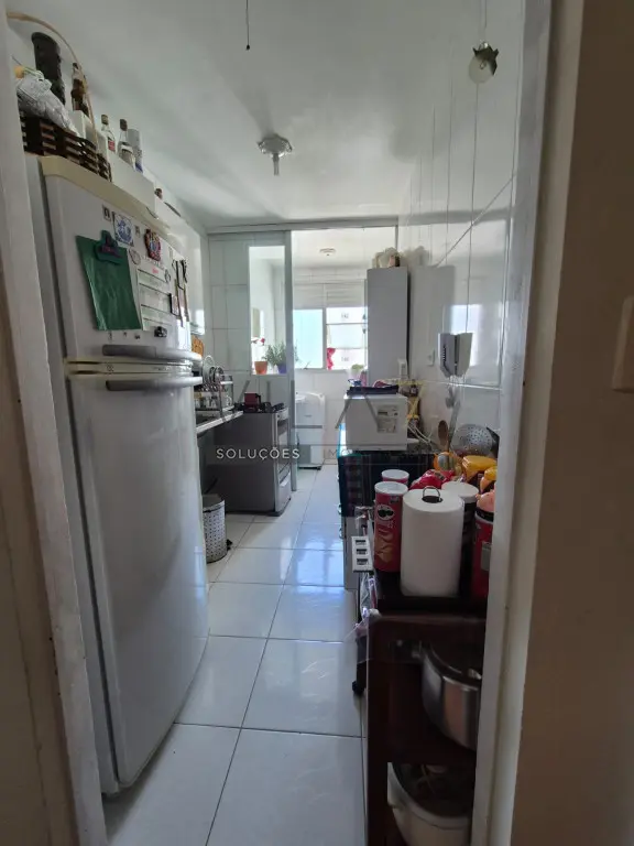 Cozinha com porta de vidro dividindo a cozinha da lavanderia