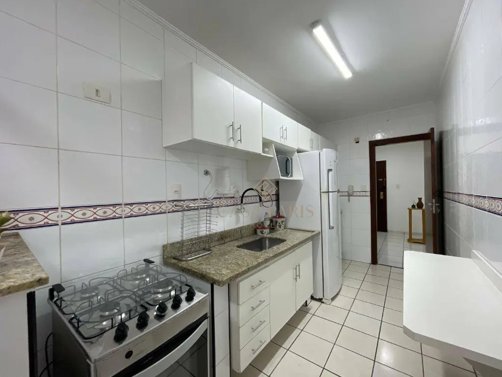 Apartamento com 2 dormitórios sendo 1 suíte, varanda com VISTA MAR, sala ampla para 2 ambientes, cozinha, área de serviço e 1 vaga de garagem.