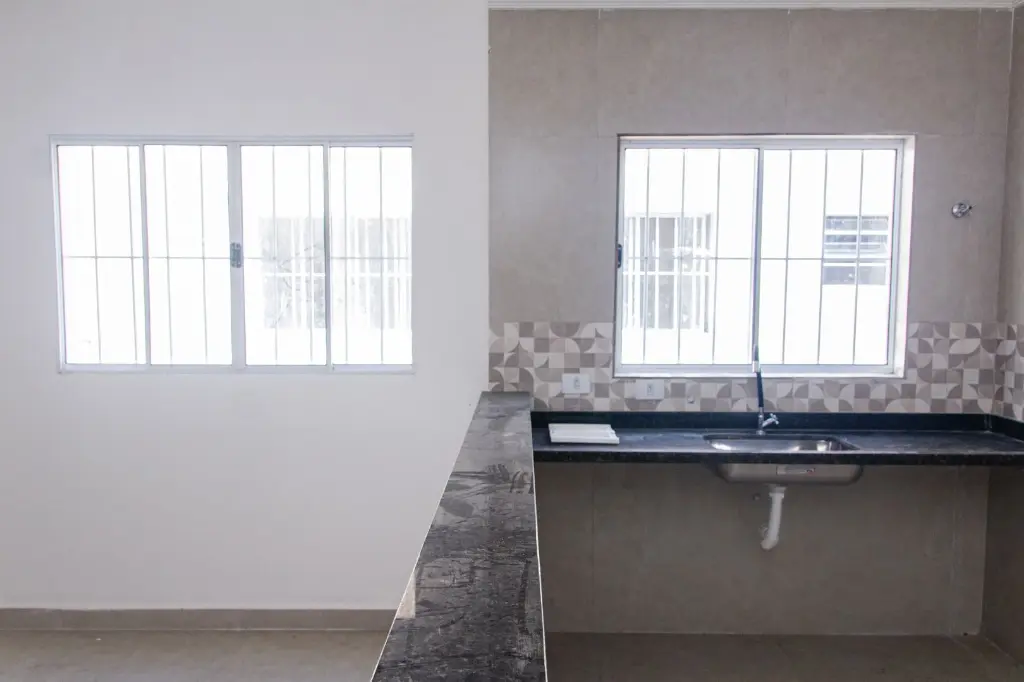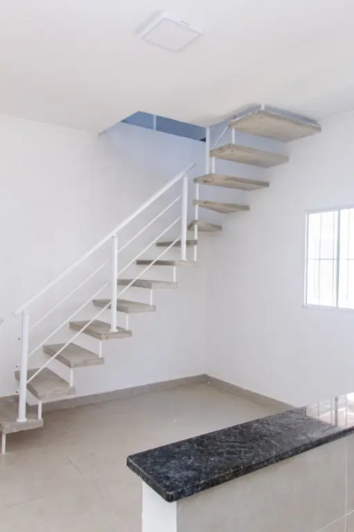 * Parte Inferior: 2 dormitórios, banheiro social, sala integrada com a cozinha americana, Quarto e Sala com sacada.
