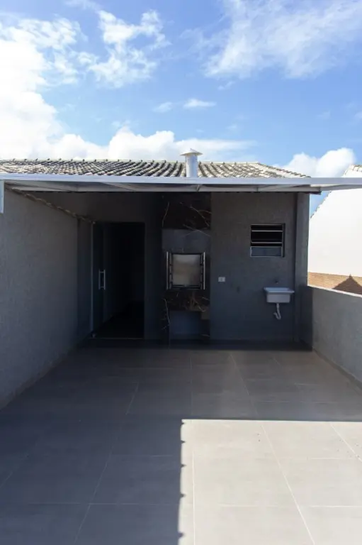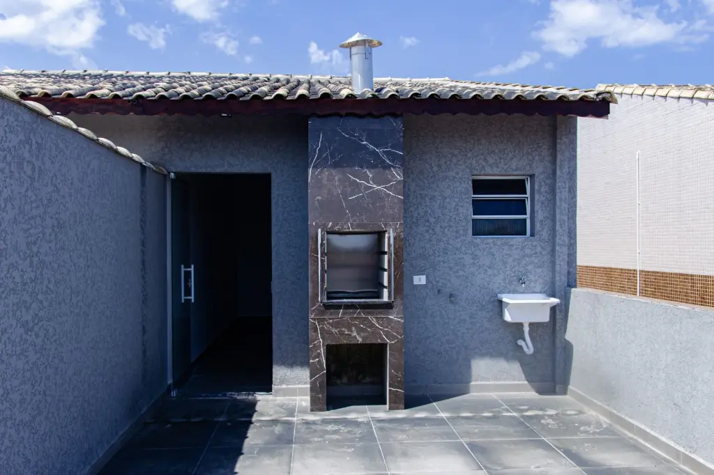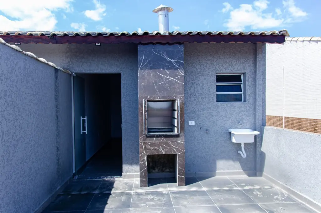 Parte Superior: Área gourmet com aproximadamente 60 metros quadrados, com pia e churrasqueira a carvão, lavabo, cobertura pergolada de alumínio com policarbonato e solárium com 30m2.