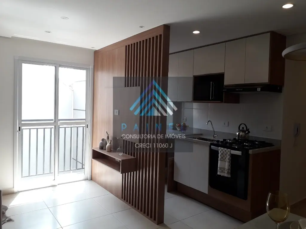 Possui aproximadamente 47 m2, está com piso em porcelanato, 2 dormitórios, sendo 1 com closet, living 2 ambientes com sacada, cozinha estilo americana, WC, sem vaga.
