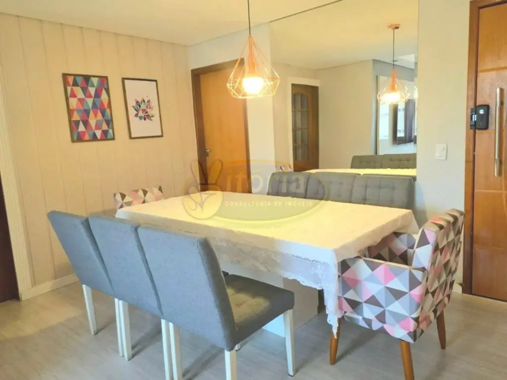 Apto no Terra Nova aconchegante apartamento a venda com 3 dormitórios (sendo um usado como escritório), 1 banheiro social e 1 de serviço utilizado como despensa. Sala 2 ambientes confortáveis mobiliado com um sofá de 2.6m e uma mesa com 8 lugares, hack e painel planejados. Apartamento recém reformado, moderno e acabamento de primeira linha. Todos os eletrodomésticos de primeira linha também, móveis planejados no apartamento inteiro, incluindo banheiro, despensa e lavanderia. Condomínio muito bem cuidado, com piscina, playground, quadra, churrasqueira e salão de festas, área de lazer com muito espaço e verde.