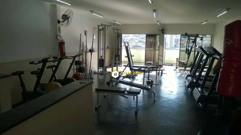 Academia equipada e quadra poliesportiva.