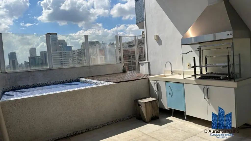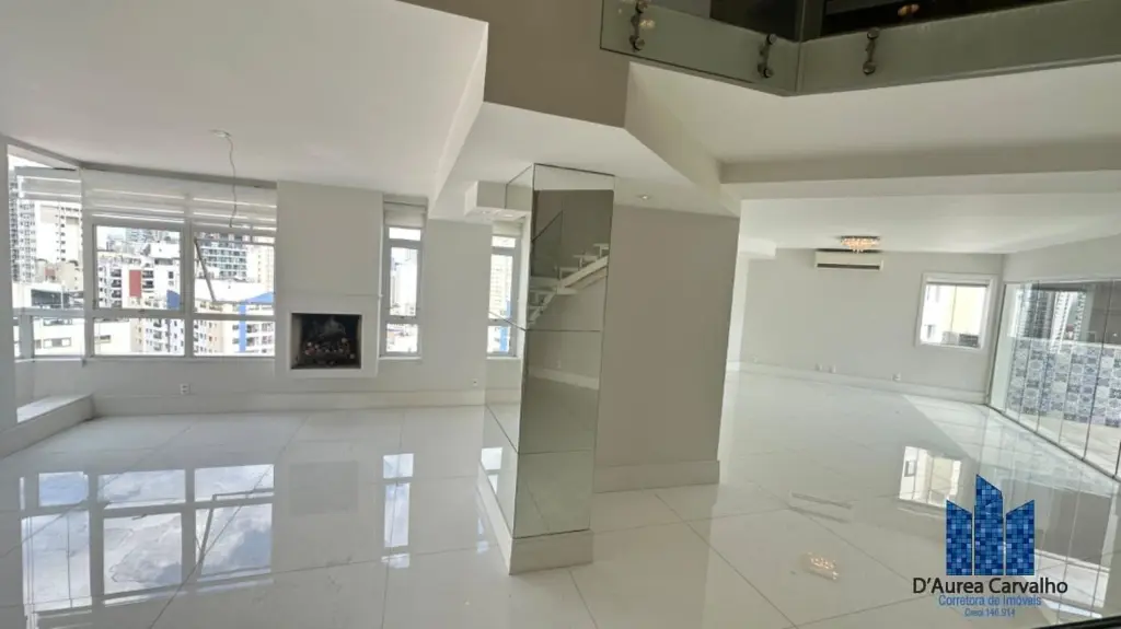 Cobertura duplex localizada no décimo sexto andar com boa ventilação e luminosidade. Possui 3 dormitórios, sendo 3 suítes, living amplo com 2 ambientes contendo lareira, sala de jantar e varanda gourmet com piscina e churrasqueira, lavabo, cozinha ampla e área de serviço com dependências de empregada. Vaga de garagem para 4 veículos.