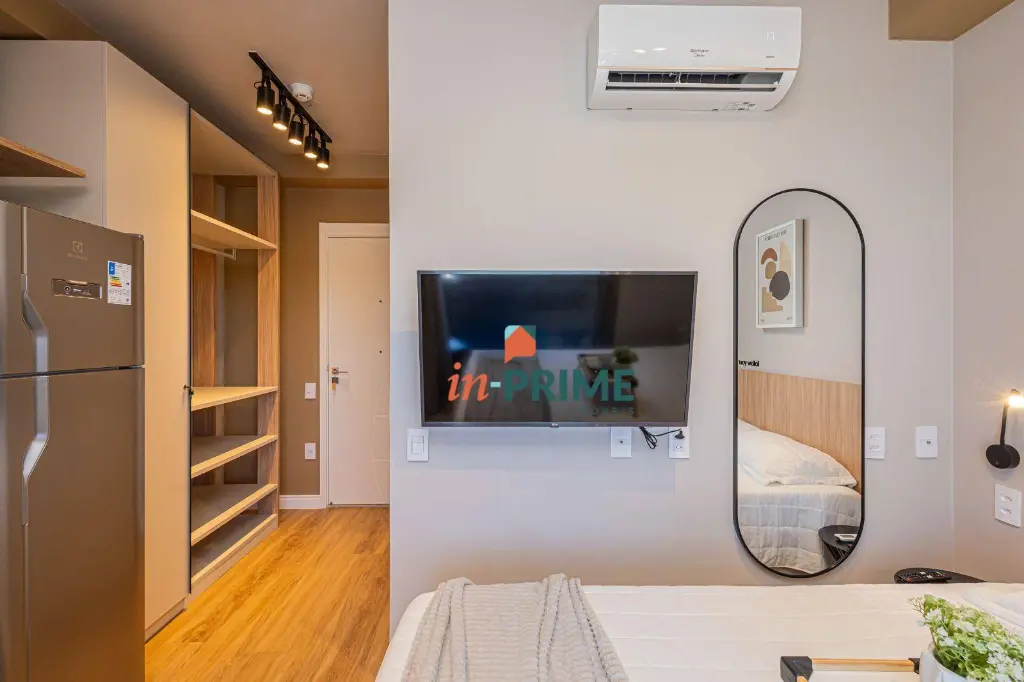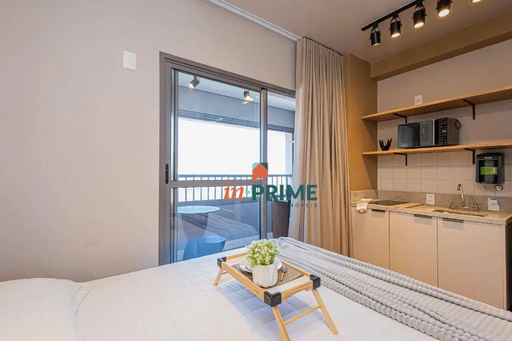 *Porteira fechada* - o imóvel está pronto para uso e oferece um ambiente moderno e funcional. A varanda é envidraçada e acomoda perfeitamente um espaço para home office, proporcionando uma vista livre que valoriza ainda mais o ambiente. Já equipado com cama queen size, ar-condicionado em pleno funcionamento, micro-ondas e fogão de indução de duas bocas, além de chuveiro a gás que garante conforto no dia a dia.