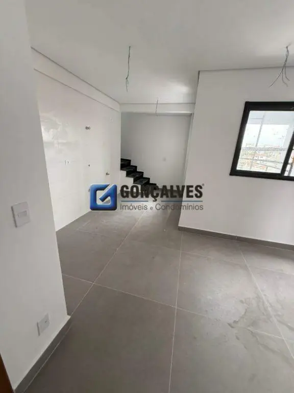Venda de uma cobertura residencial em Santo André, no bairro Parque Oratório. Imóvel com 134,08 m² de área interna, 2 dormitórios, 2 banheiros, 1 vaga de garagem e elevador. Acabamento em porcelanato, área de serviço, aquecimento elétrico, gás canalizado, interfone e portão eletrônico. Localizada no fundo do condomínio, com financiamento aceito.