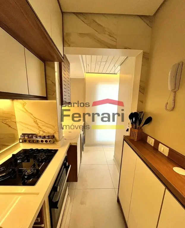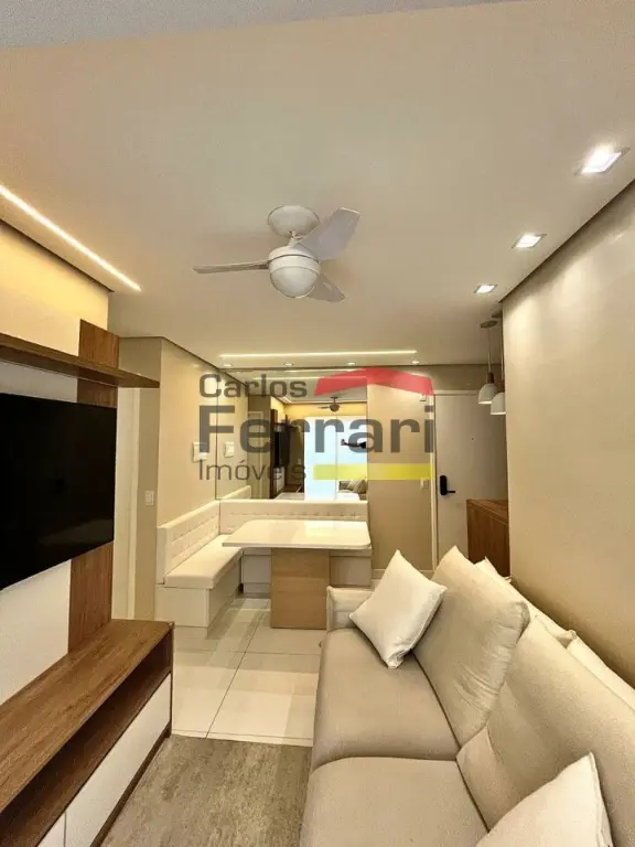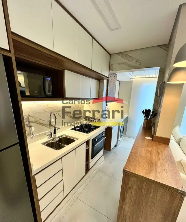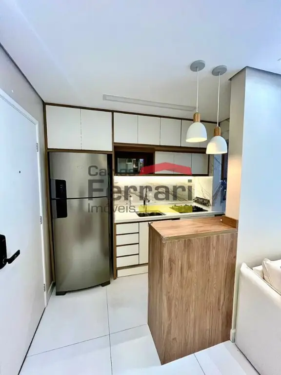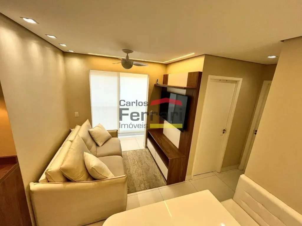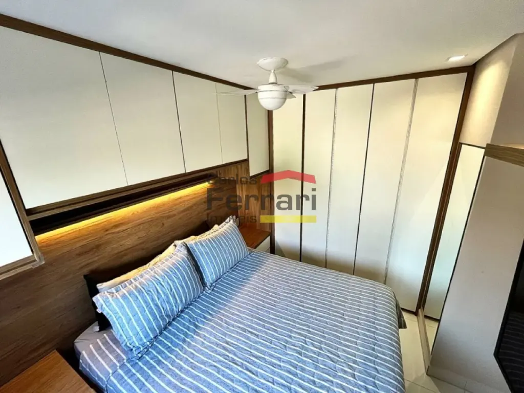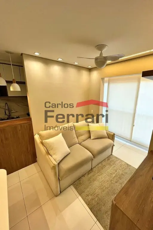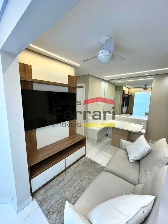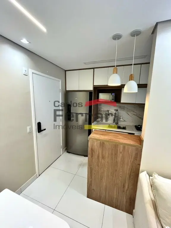 Apartamento com 42m², totalmente mobiliado, com acabamento em porcelanato e móveis planejados em todos os ambientes. Planta bem aproveitada e decoração moderna.