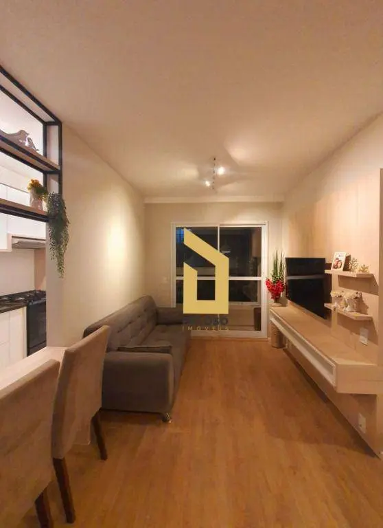 Com 55m² de área útil, o apartamento possui 2 dormitórios sendo 1 suíte com armários planejados, sala para 2 ambientes decorada, cozinha planejada, varanda e lavanderia.