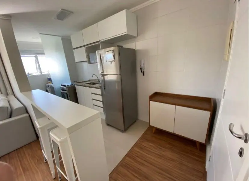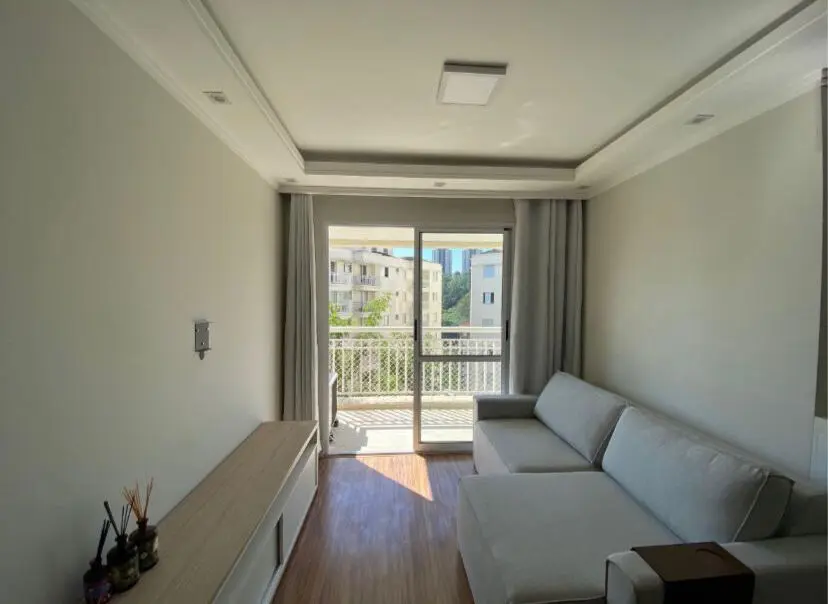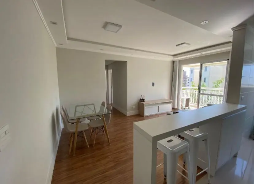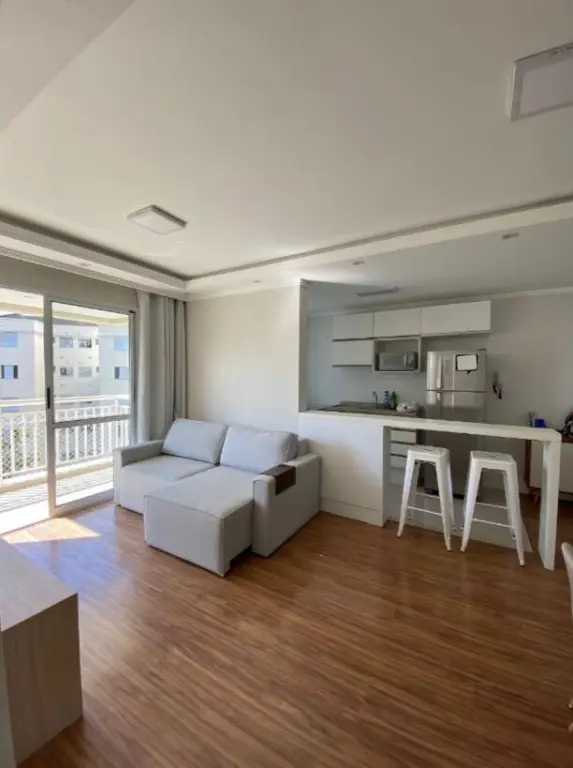 Apartamento contendo 2 dormito´rios (sendo 1 sui´te) com arma´rios, Sala para dois ambientes com sacada, Cozinha americana com arma´rios, Banheiro social com box de vidro, A´rea de servic¸o, 1 vaga de garagem coberta.