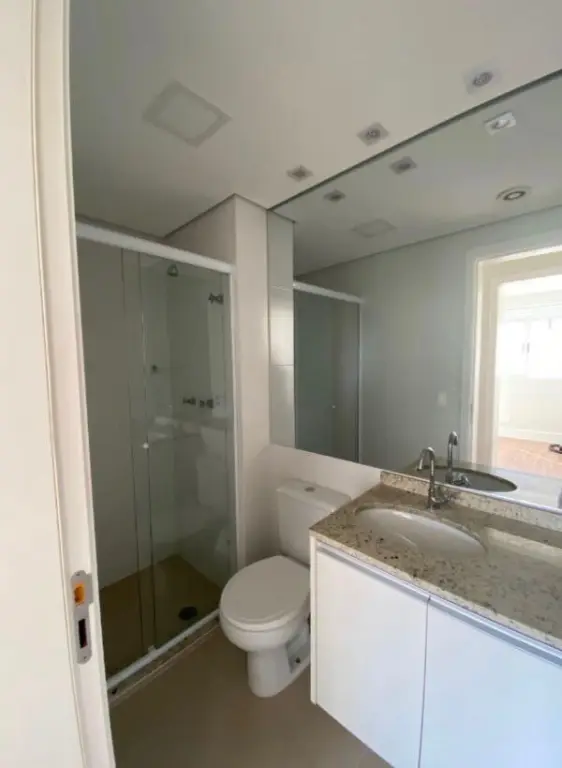Banheiro corredor: Espelho e mo´vel embaixo da pia.