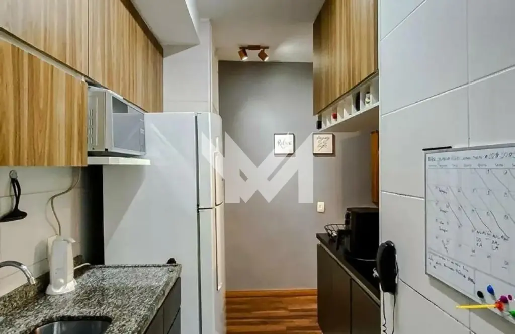 O imóvel conta com: 2 dormitórios sendo 1 suíte, Sala com varanda, Cozinha, Banheiro, área de serviço e 1 Vaga de Garagem .