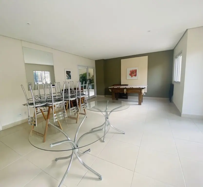 Condominio dispõe de Piscina, salão de festa, mini quadra esportiva, Playground e academia.