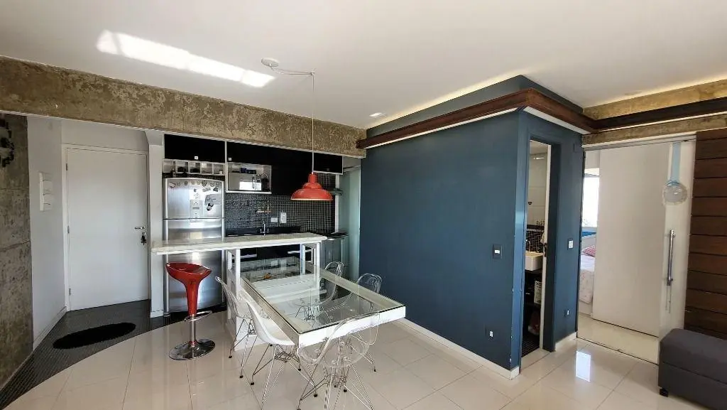 Esse incrível apartamento recém reformado conta com sala bem iluminada em conceito aberto e toda estilizada, dividida em dois ambientes e sanca com iluminação embutida. Um dos ambientes tem mesa de vidro embutida e o outro é a sala de TV. A varanda é um dos diferenciais desse imóvel, pois é um espaço amplo e fechada em vidro com belíssima vista com direito a por do sol.