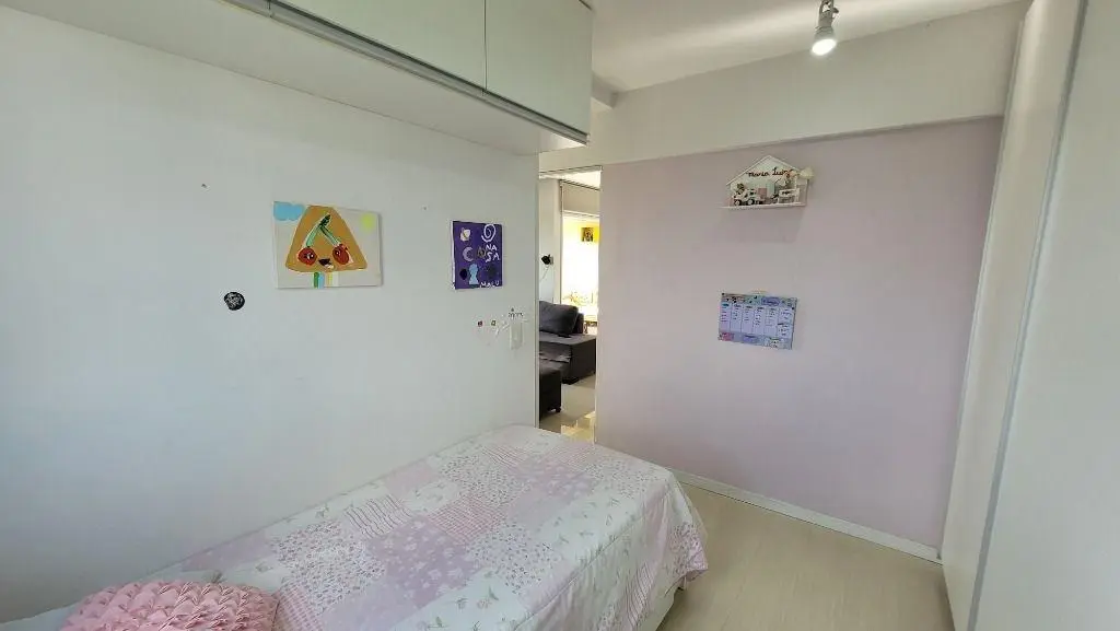 A cozinha é toda planejada, no estilo americano, com armários, balcão e gabinete, a lavanderia conta também com armário planejado. O banheiro social tem gabinete, espelheira e box de vidro .A suíte conta com ar-condicionado e armário planejado, banheiro com gabinete, espelheira e box de vidro. Já o segundo quarto conta com guarda-roupas e armário planejado.