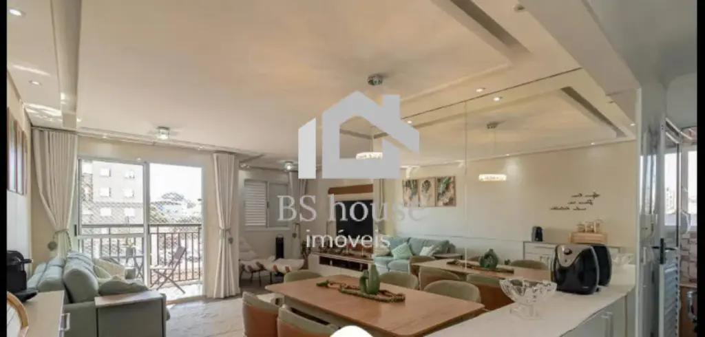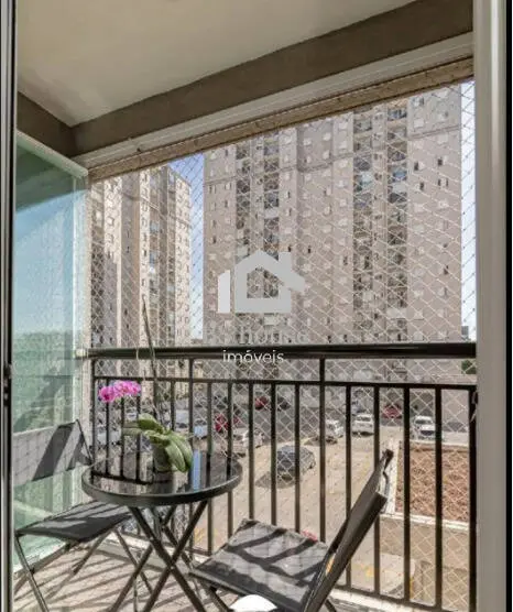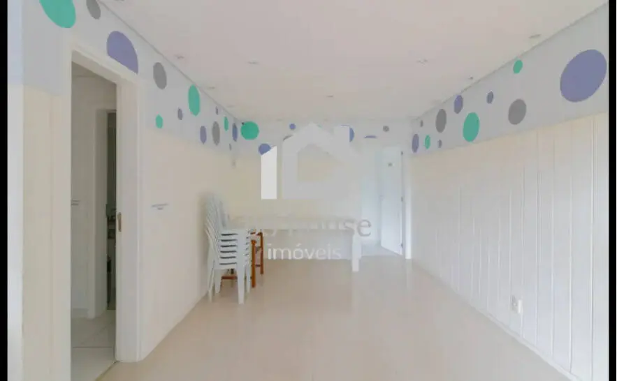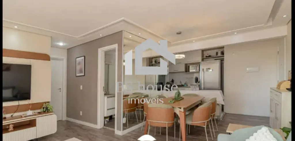 A sala integra-se à sacada envidraçada, que possui tela de proteção, criando um ambiente agradável e versátil. O apartamento apresenta acabamento moderno, com piso vinílico e teto rebaixado em gesso, conferindo elegância e conforto aos ambientes.