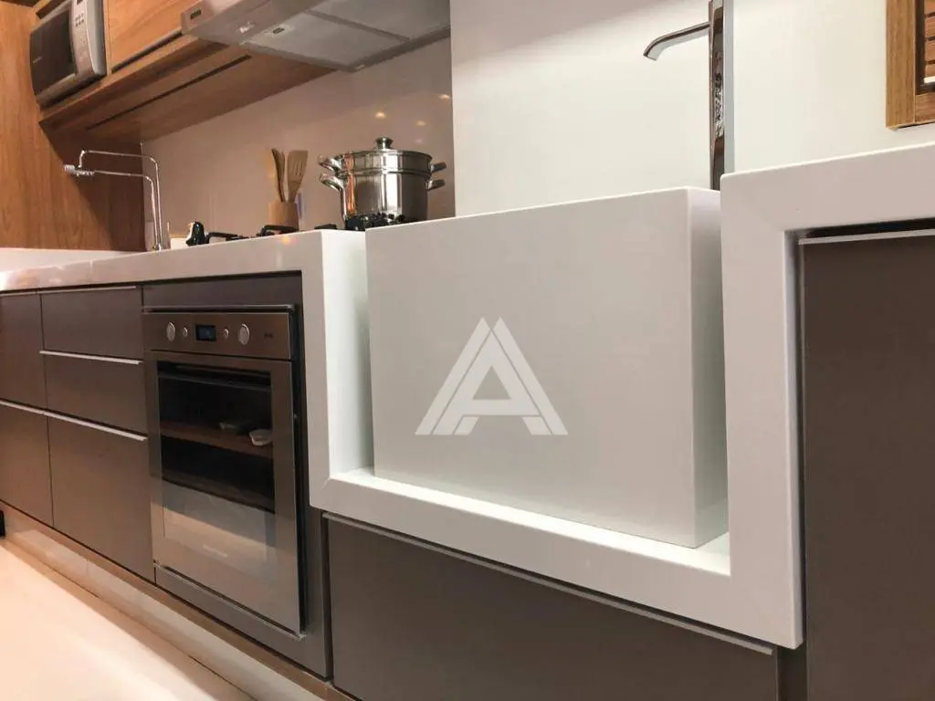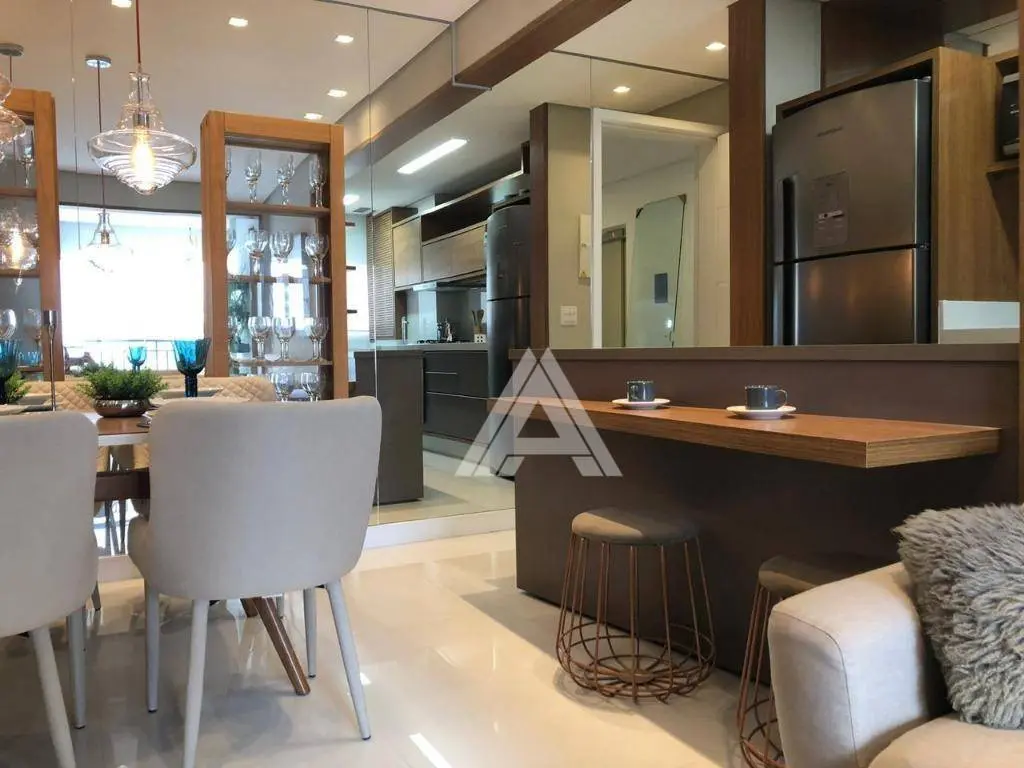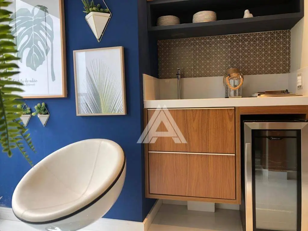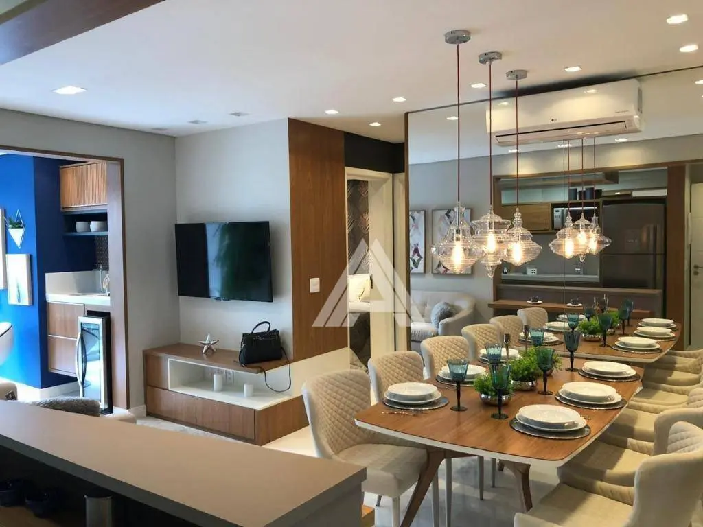 Possui 65 m² de área útil, distribuídos em 02 suítes, sala 02 ambientes com varanda gourmet, ampla cozinha integrada a área de serviços e 02 vagas de garagem. Estrutura para ar-condicionado nos dormitórios e sala.