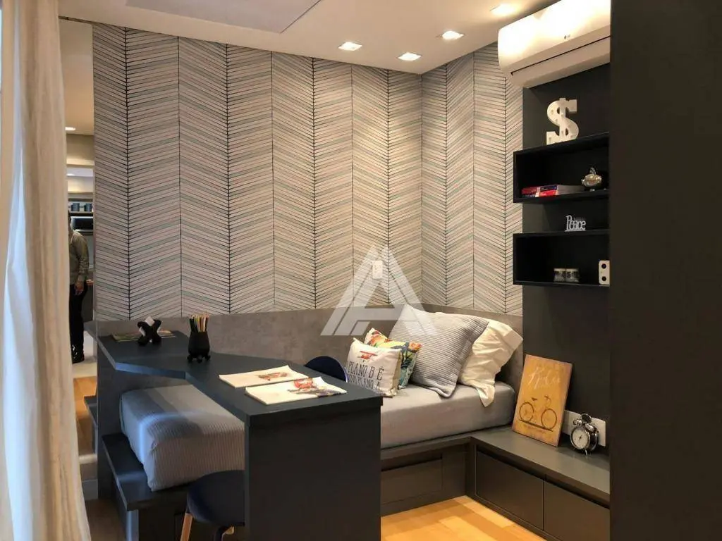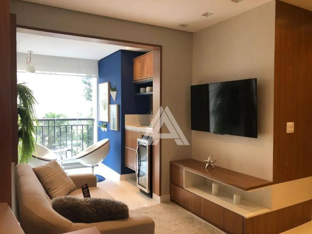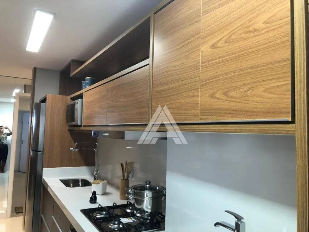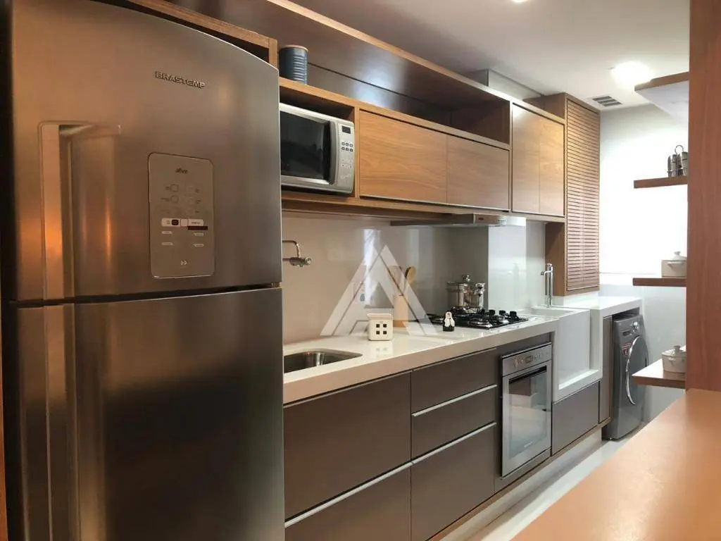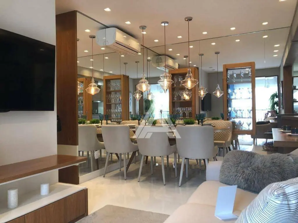 Possui 65 m² de área útil, distribuídos em 02 suítes, sala 02 ambientes com varanda gourmet, ampla cozinha integrada a área de serviços e 02 vagas de garagem. Estrutura para ar-condicionado nos dormitórios e sala.