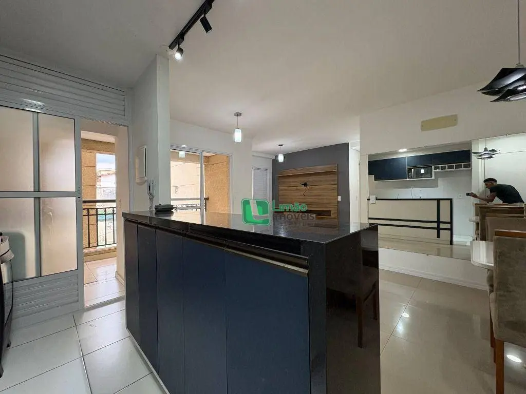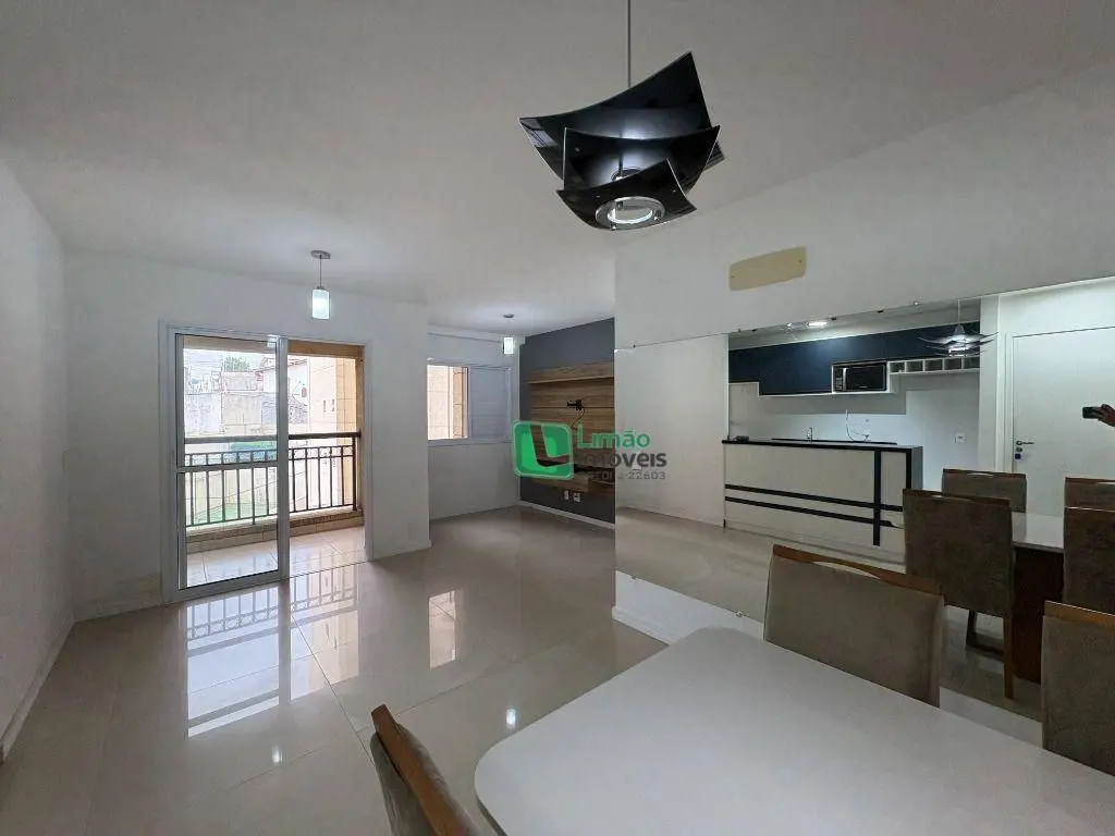 Imóvel com 3 dormitórios de planta, mas hoje contando com 2 dormitórios, sala ampliada ampla para três ambientes em fino acabamento, varanda grill, área de serviços, wc social, e 2 vagas grandes de garagem para automóveis.