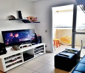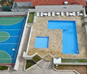 Apartamento com área útil de 60 m2, 2 dormitórios, sala, cozinha, wc, área de serviço, sacada, área de lazer churrasqueira, piscina, playground, academia, salão de jogos, salão de festas, portão eletrônico e 2 vagas garagem.