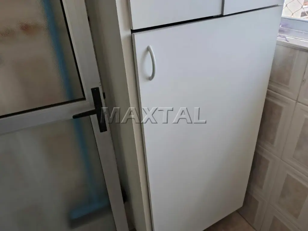 Na área de serviço há armário e luminárias instaladas em todos os ambientes.