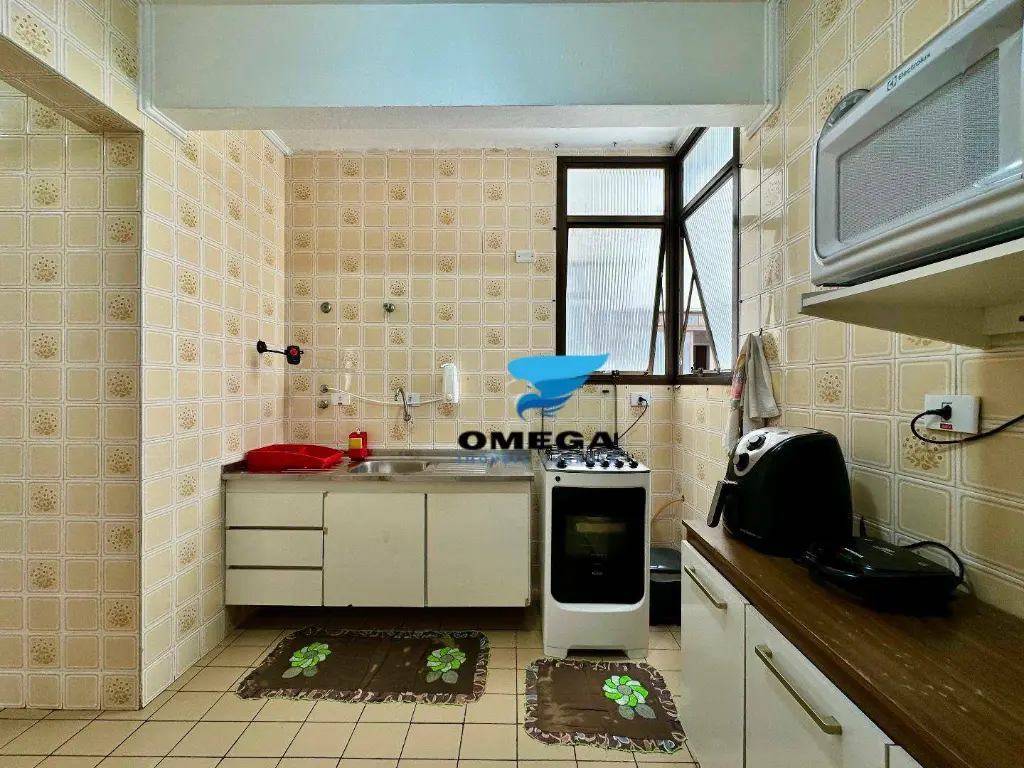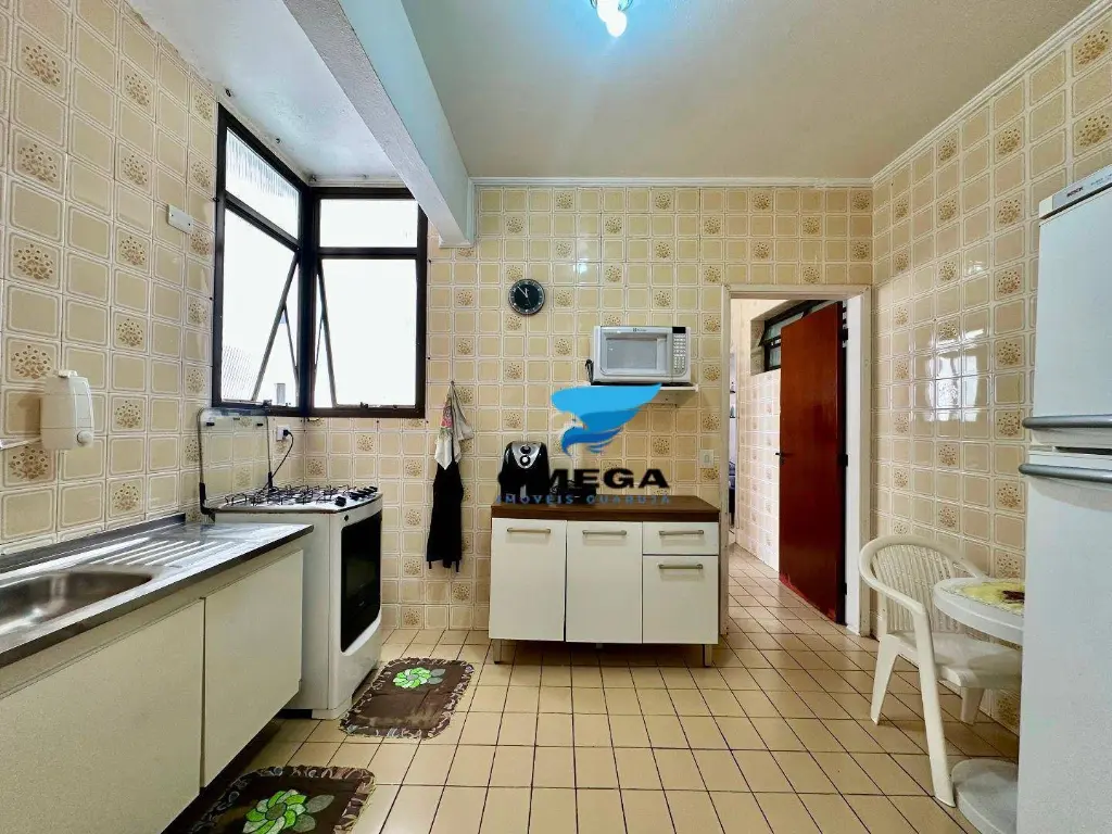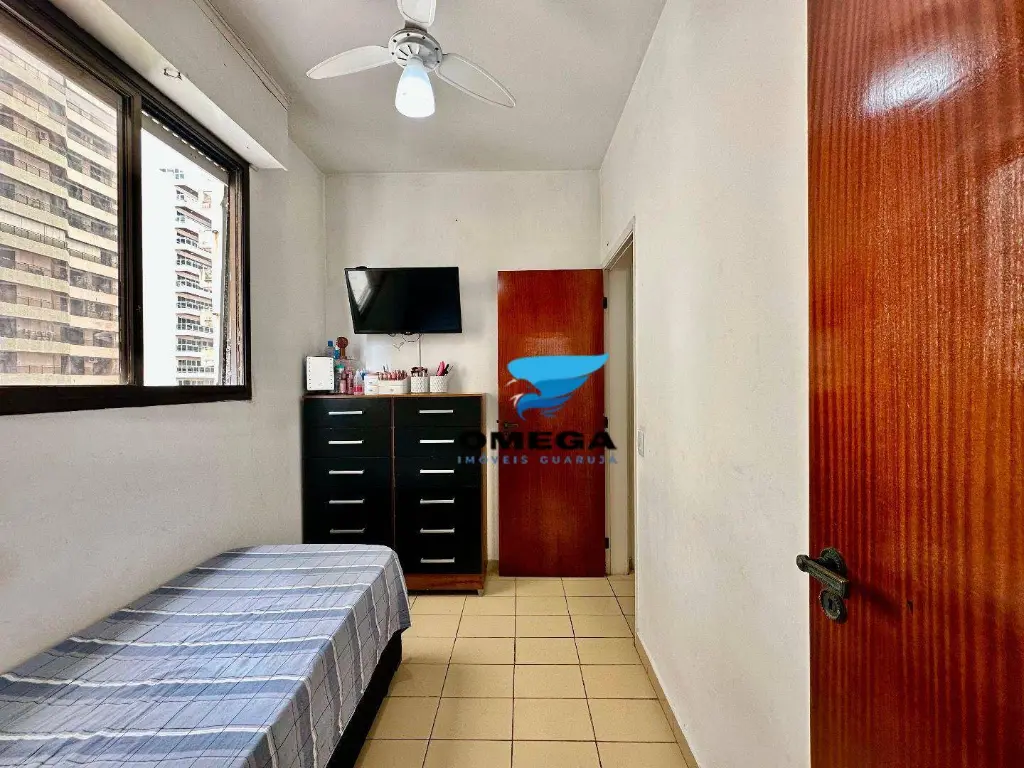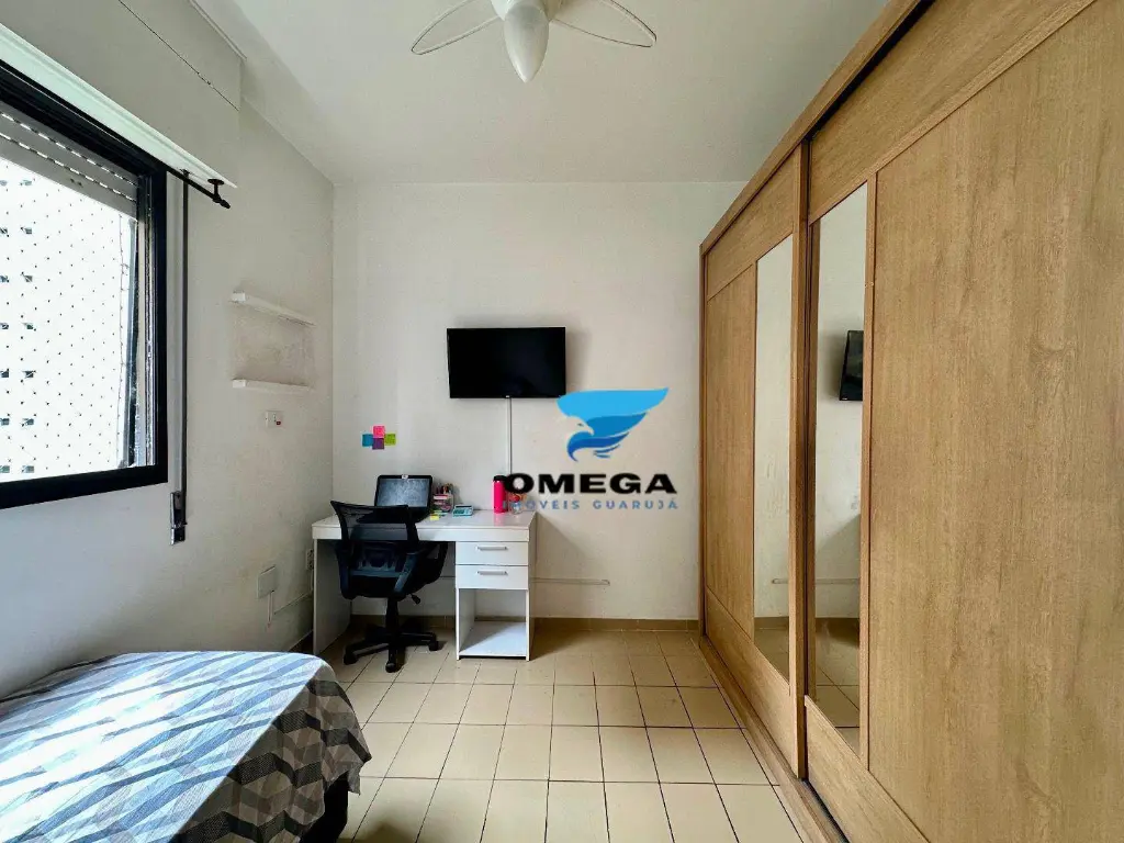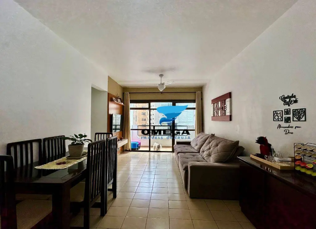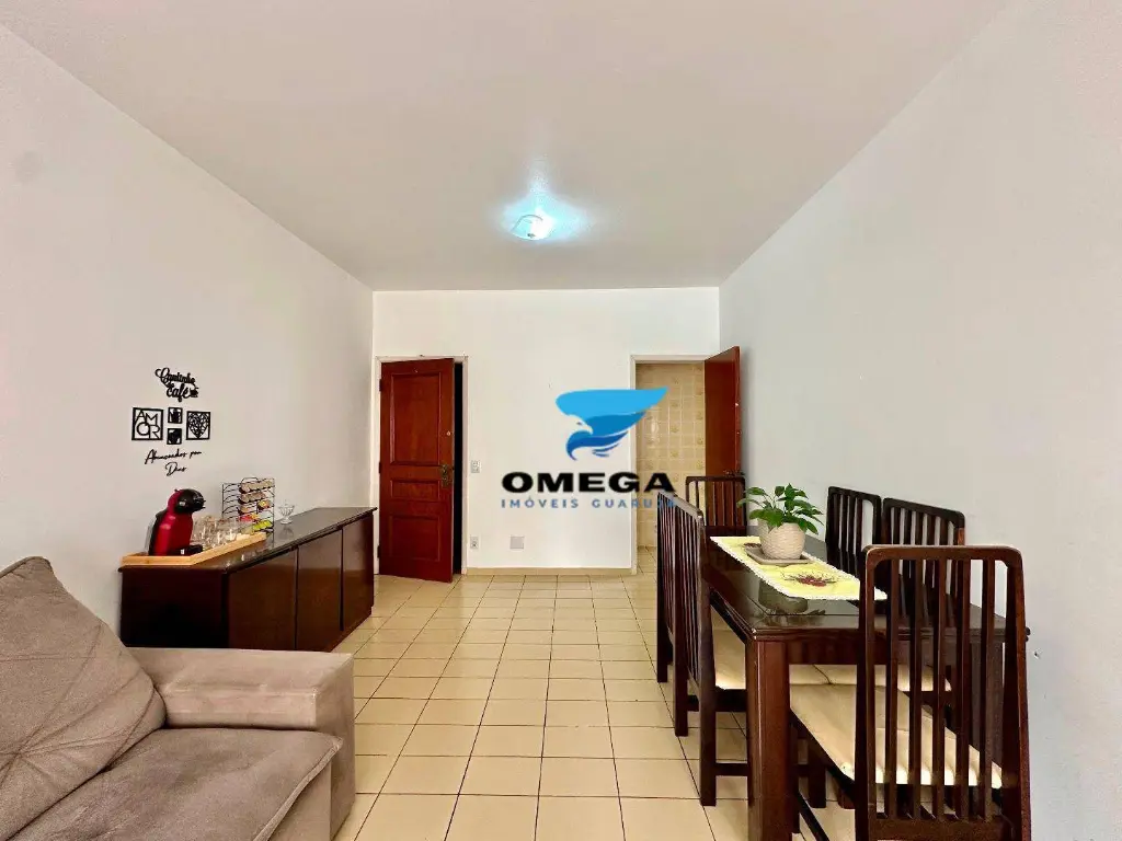 Apartamento com boa distribuição à venda pertinho da Praia das Pitangueiras no Guarujá - SP. Sacada de frente para rua, quartos bem arejados. CONFIRA!