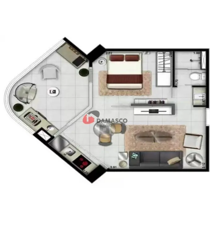 Este lindo flat/stúdio com armários planejados no banheiro, cozinha e quarto, está localizado em uma avenida de fácil acesso, próximo a cinemas, escolas, farmácias, igrejas, lojas e muito mais.