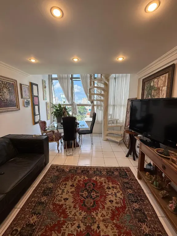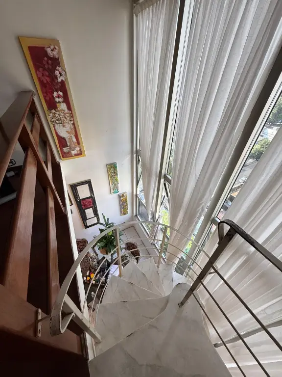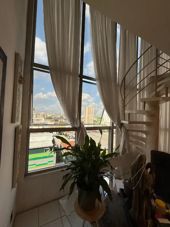 Apartamento tipo loft duplex, parte inferior sala 2 ambientes, cozinha tipo americana, lavabo, área serviço.