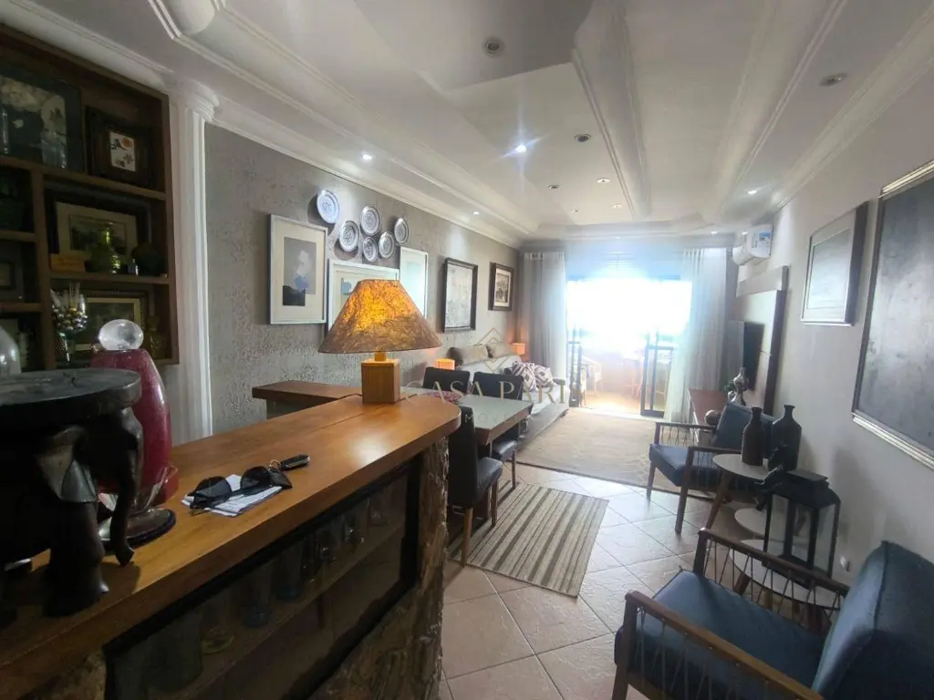 O imóvel possui 2 suítes, sala dois ambientes, varanda com vista FRENTE MAR, cozinha, área de serviço, banheiro social e 1 vaga de garagem rotativa.