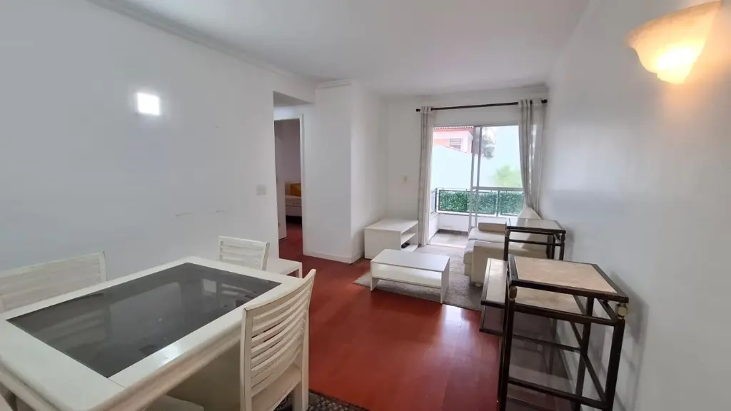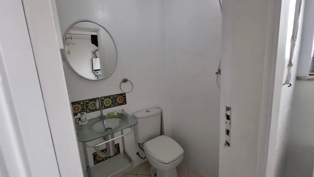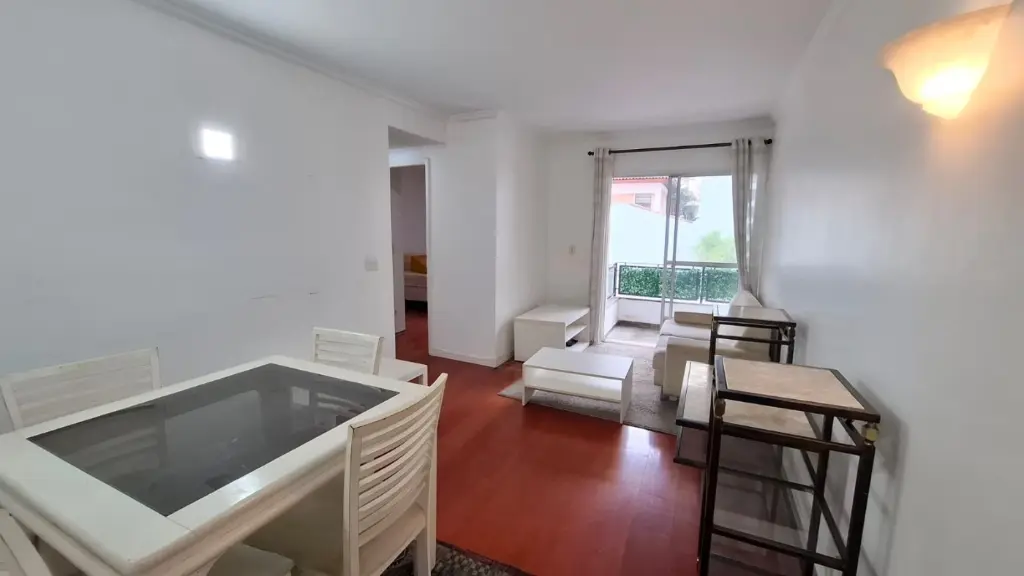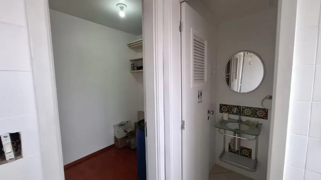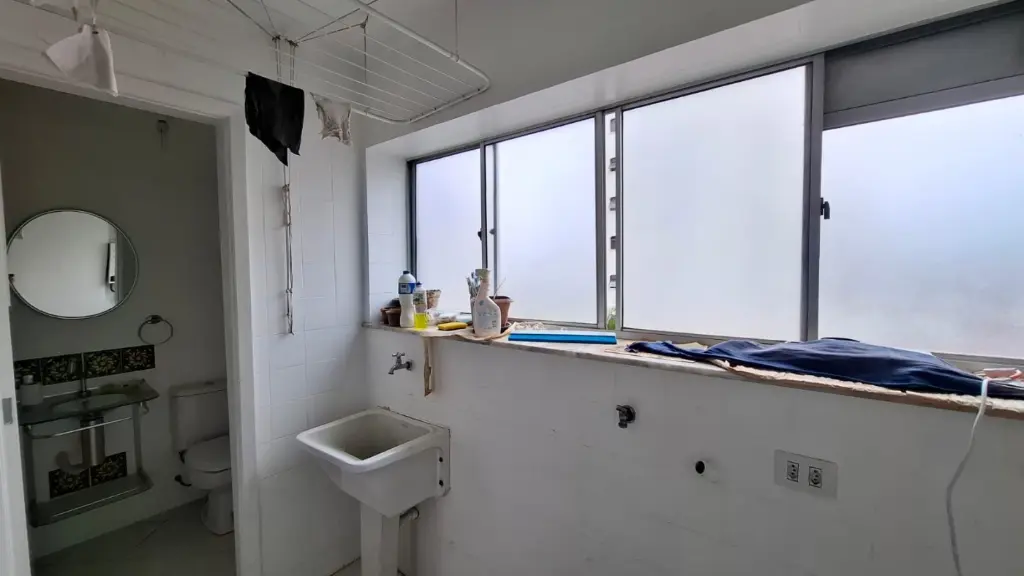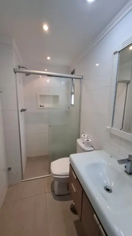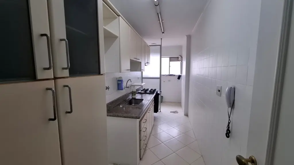 Imóvel de 64m², com 2 dormitórios, sendo 1 deles com armários, banheiro reformado, sala para 2 ambientes, cozinha com armários, área de serviço com quarto e banheiro de apoio, além de 1 vaga de garagem.