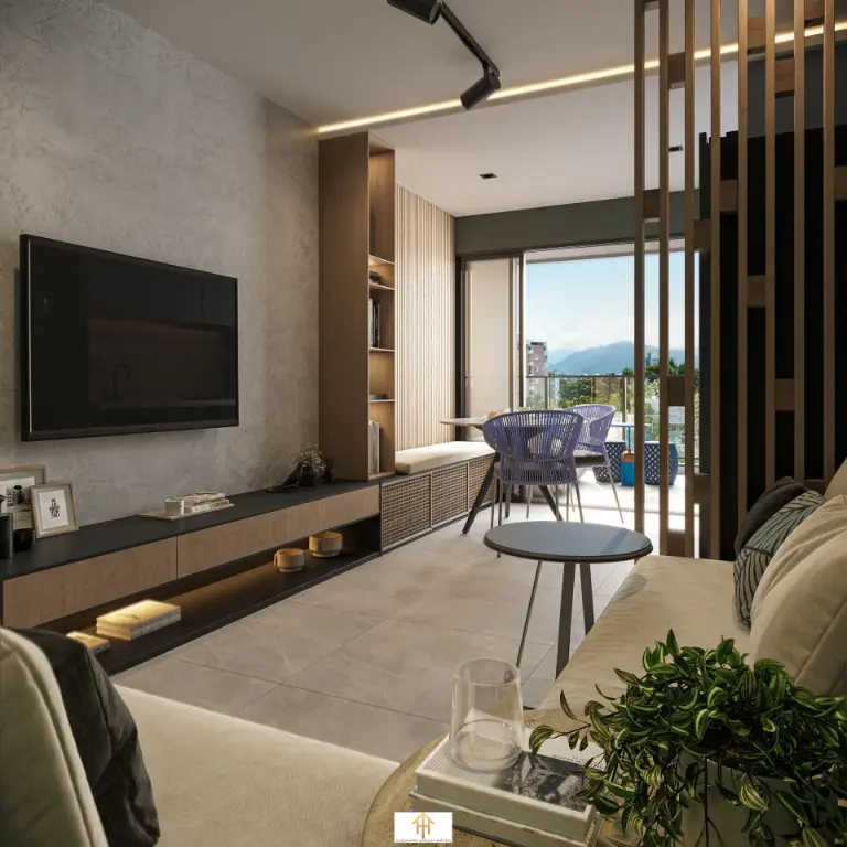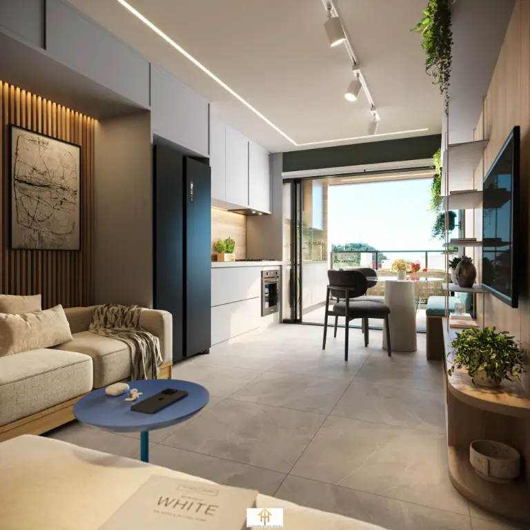 Espaço integrado com dormitório, sala e cozinhaBanheiro modernoVaranda gourmet01 vaga de garagem ? Unidades de 60 a 76m²