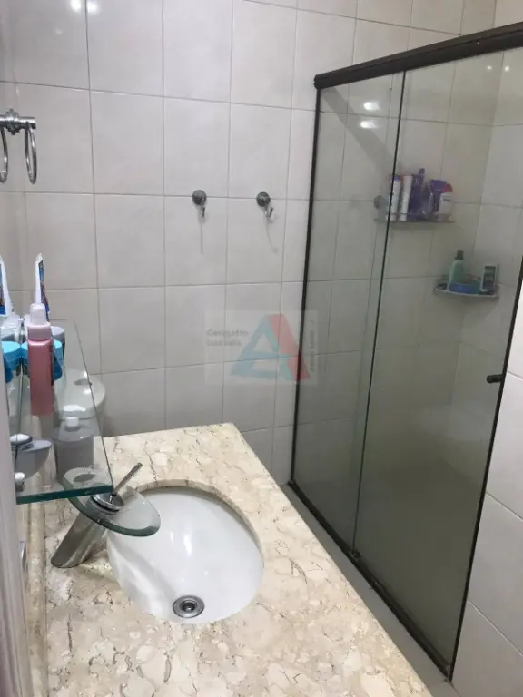 Banheiros completos, com box de vidro e gabinete