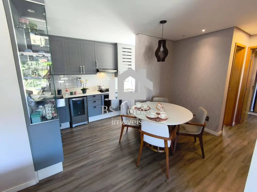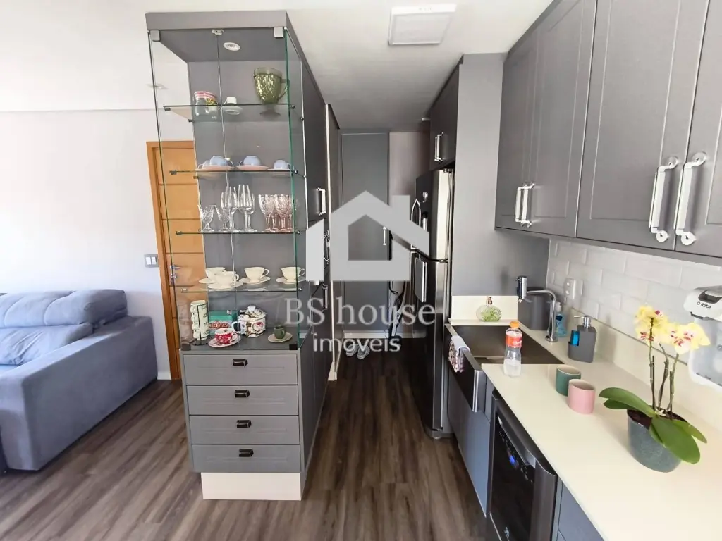 A integração com a área social mantém a fluidez dos ambientes, perfeita para quem gosta de cozinhar e interagir.