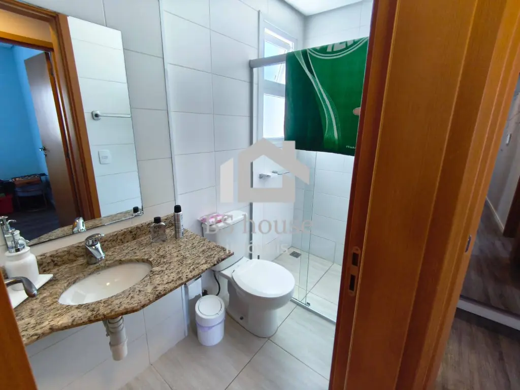 O banheiro da suíte possui acabamento de qualidade, com aquecimento a gás, trazendo conforto em todas as estações.