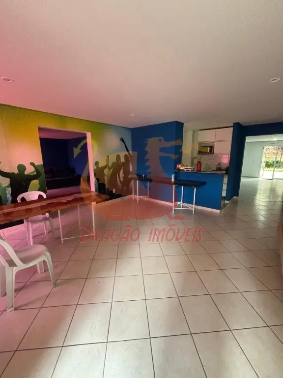 Piscinas adulto e infantil, salão de festas e churrasqueira.