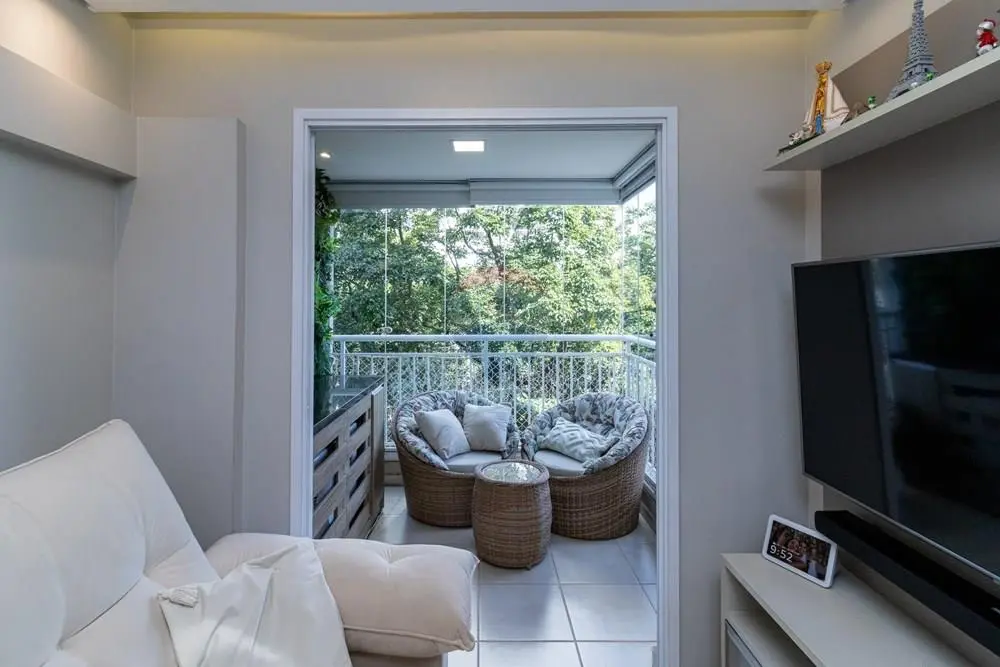 A sacada é um dos grandes destaques, trazendo excelente iluminação natural e um espaço agradável para momentos de descanso.