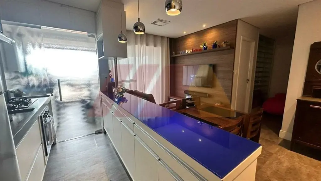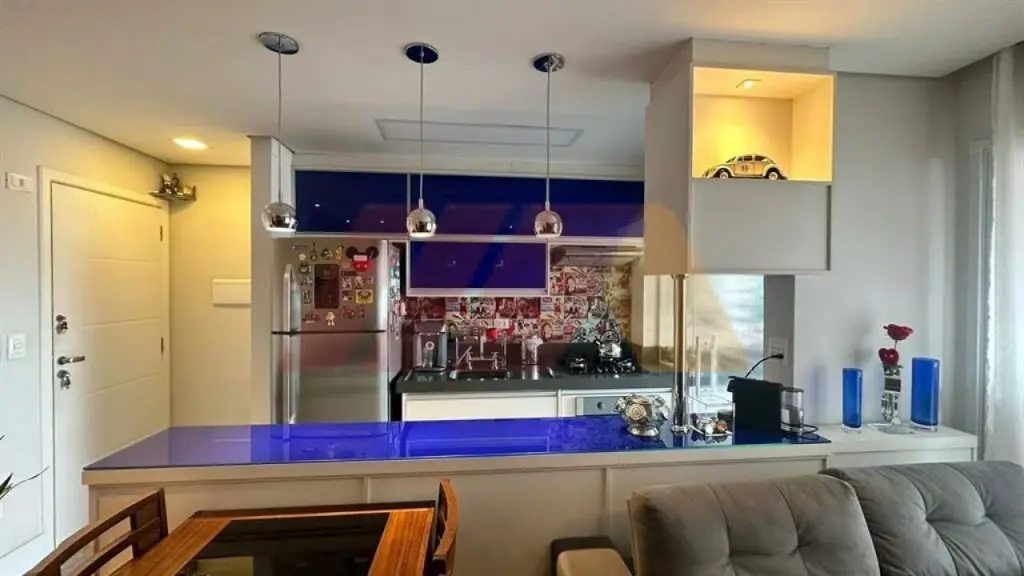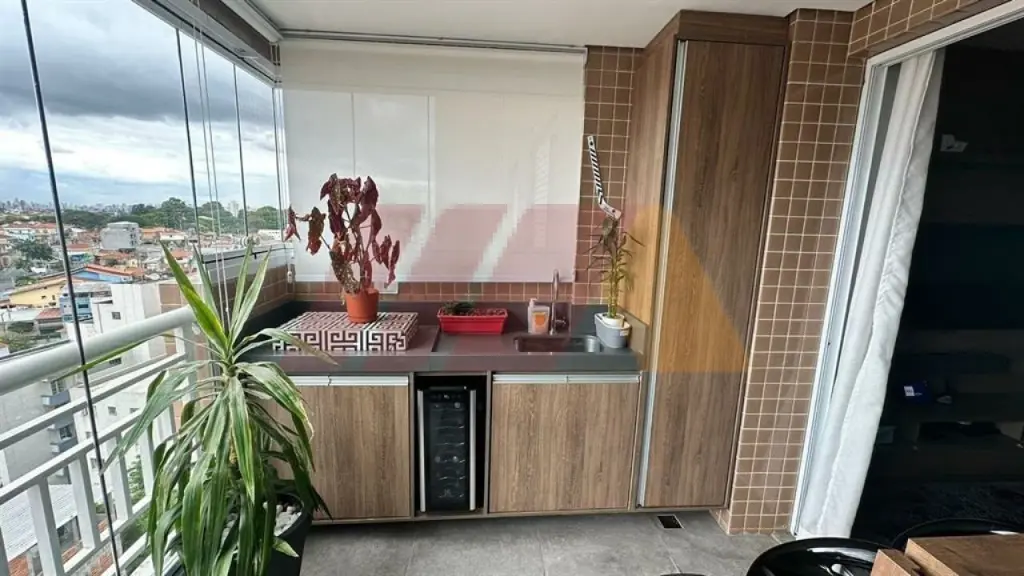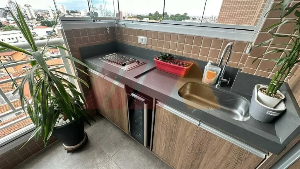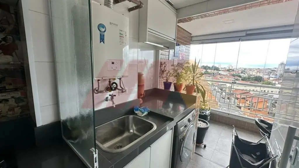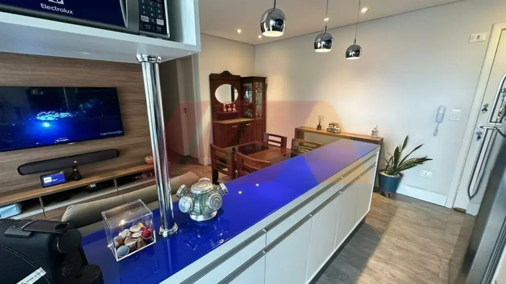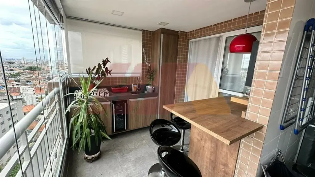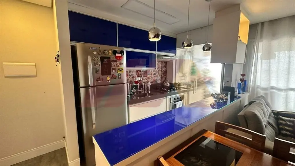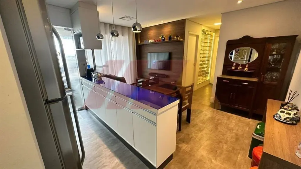 Com armários, sendo um suíte, living para dois ambientes com sacada fechada com vidros com churrasqueira, cozinha americana e planejada, iluminação automatizada em todos os ambientes, banheiro social, armários embutidos, gás encanado e 2 vagas de garagens fixas e medias.