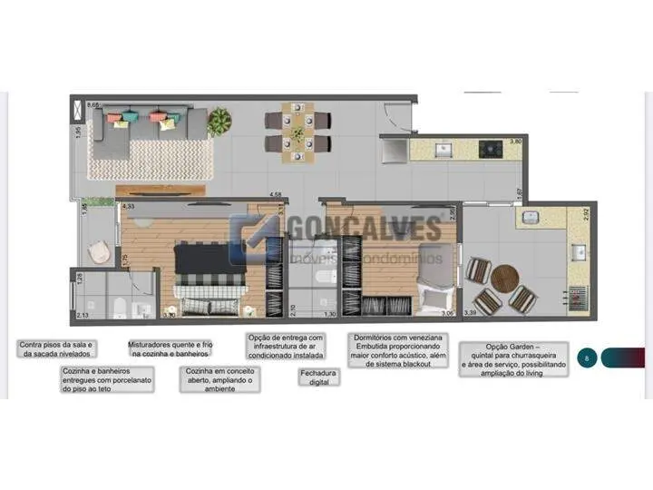 Apartamento à venda no Centro de São Bernardo do Campo/SP, com 71,23m², 2 Dormitórios sendo 1 suíte e aceita pet. Apartamento com quintal, 71,23m², 02 Dormitórios sendo 1 suíte, Sala 2 ambientes, Cozinha, 1 Banheiro, Área de serviço, Quintal com churrasqueira, 2 Vagas de garagem cobertas, Prédio baixo com elevador (entrega dezembro de 2023) região próximo da marechal Deodoro DISPONIVEL PARA VISITAR, AGENDE AGORA!!