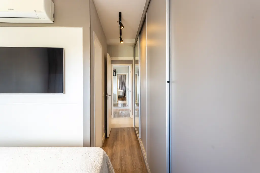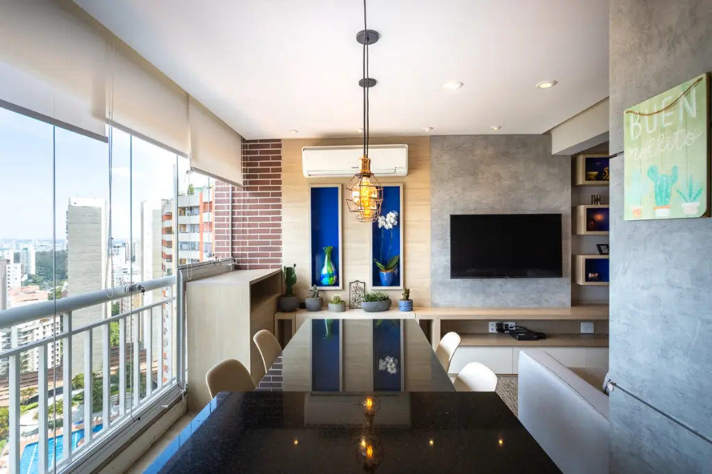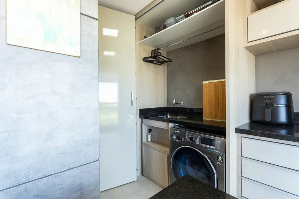 O living é integrado a uma varanda gourmet, criando um ambiente amplo e sofisticado, ideal para receber. O imóvel, decorado por arquitetos, conta com dois quartos sendo uma elegante suíte e mais um banheiro social, além de armários de excelente padrão. Aparelhos de ar-condicionado já estão instalados na suíte e na sala. A cozinha de design moderno possui diversos eletrodomésticos de alto padrão perfeitamente integrados à marcenaria, elevando o nível de praticidade e requinte. O grande destaque é a vista panorâmica maravilhosa que se estende pelo bairro, com muito verde. Conta ainda com depósito e duas vagas livres e fixas.