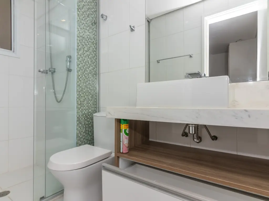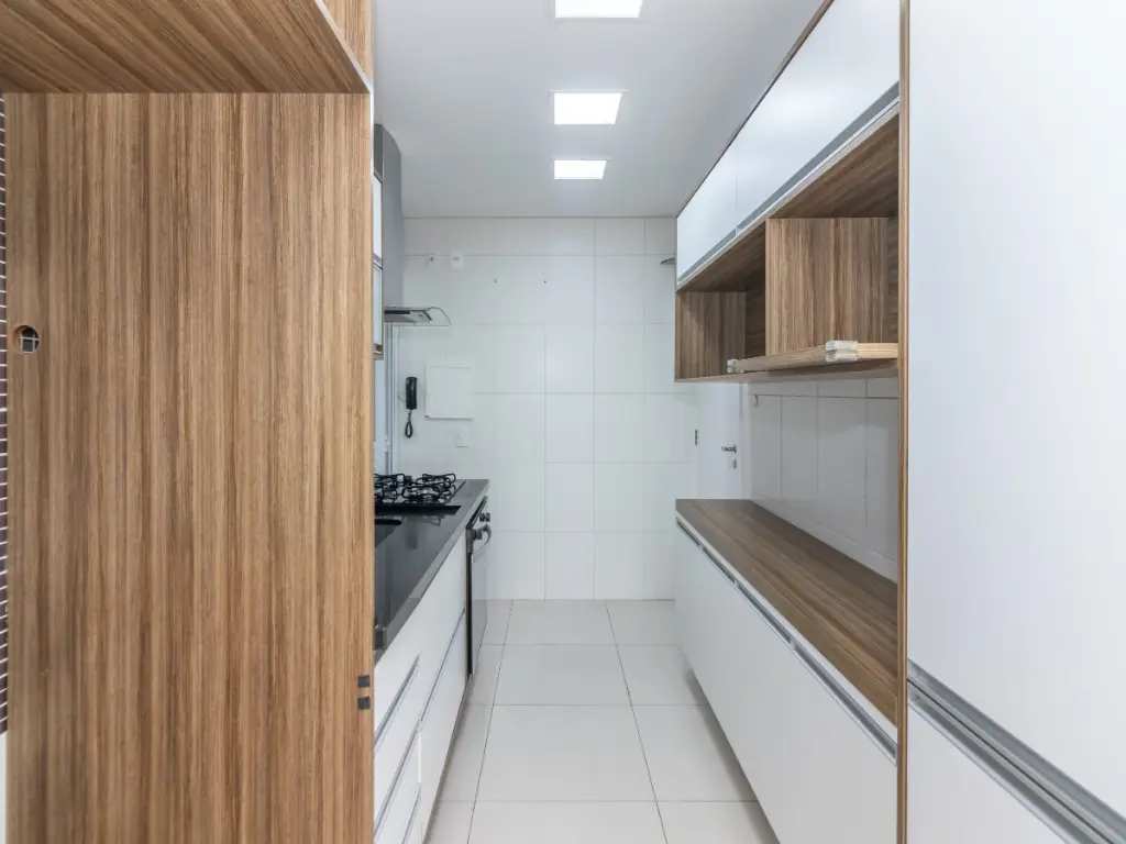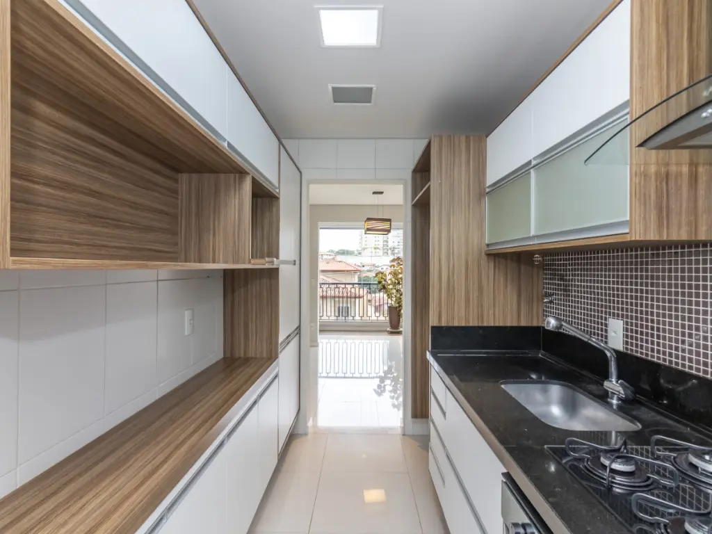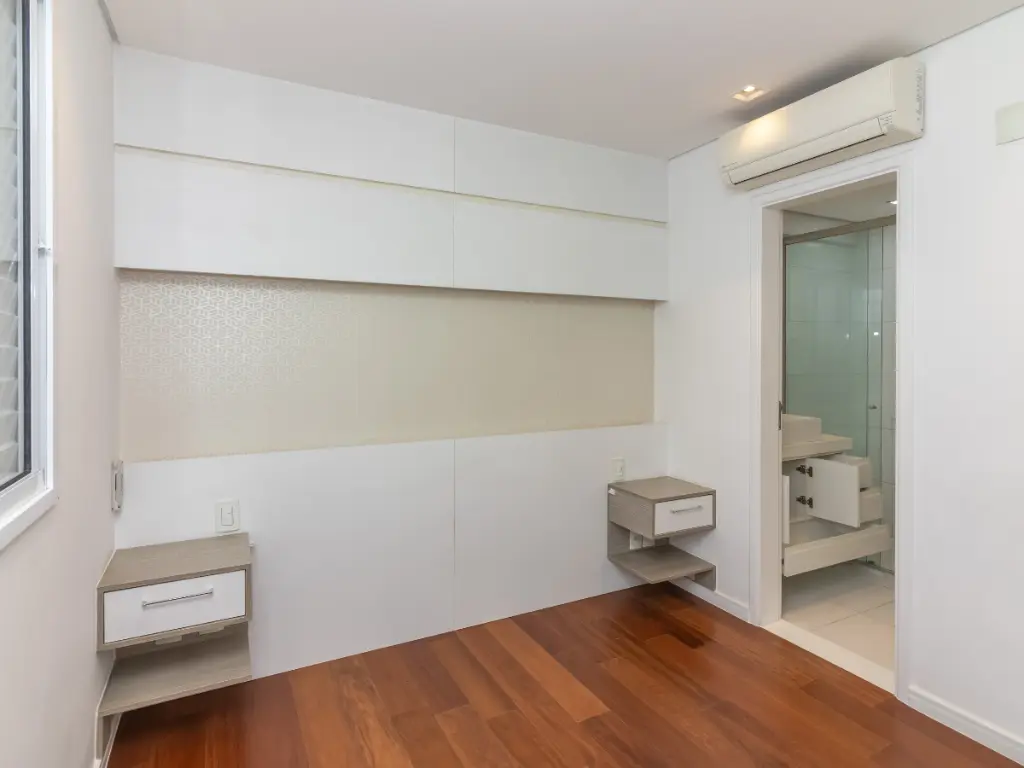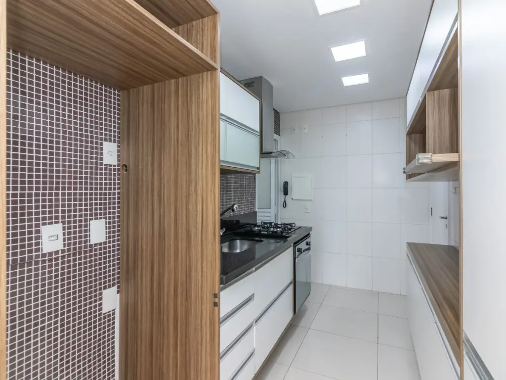 A cozinha, totalmente planejada, é moderna e funcional, equipada com armários de excelente qualidade, bancadas e espaço para todos os eletrodomésticos. As suítes contam com excelente entrada de luz natural, ar-condicionado e acabamentos de alto padrão. Os banheiros possuem revestimentos modernos, box em vidro e ventilação natural.