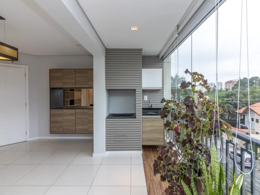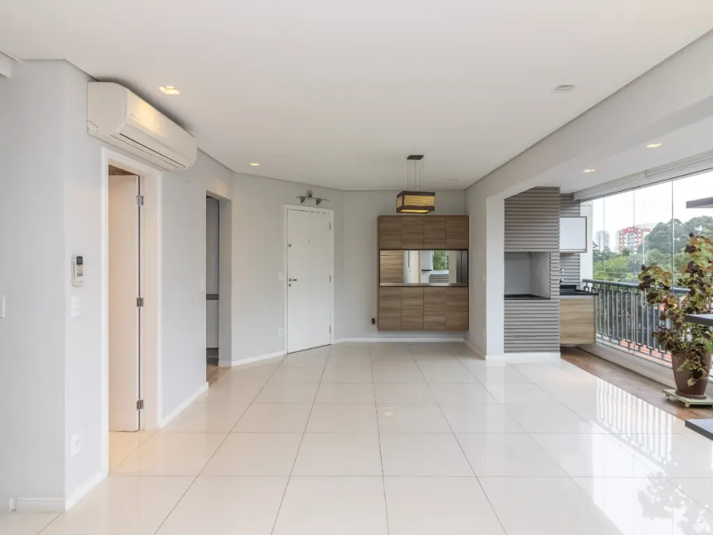 A varanda gourmet com churrasqueira é um verdadeiro convite para momentos de lazer e convivência. Integrada à sala ela oferece amplitude, iluminação natural e ventilação cruzada, criando um ambiente arejado e ensolarado. A vista é livre e permanente, voltada para a frente do condomínio, proporcionando uma sensação de tranquilidade e privacidade difícil de encontrar em São Paulo.