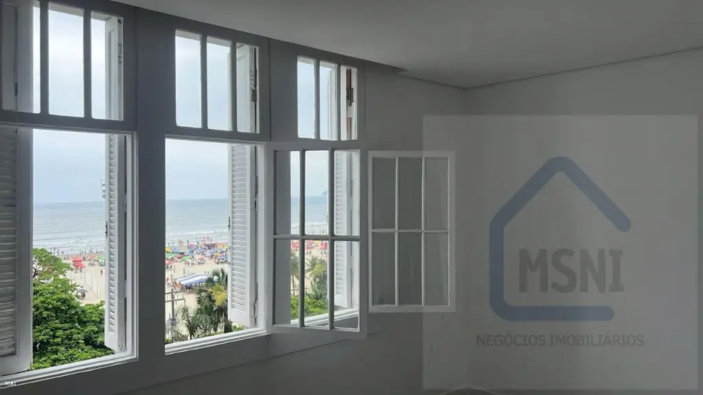 Apartamento localizado no Coração do Gonzaga, Reformado, sendo 02 Quartos de Frente Vista Mar, sendo 01 Suíte com Box, Espelho e Planejadfos, Cozinha com Planejados e Conceito Aberto com Bancada em Granito, Área de serviço, sem vaga de garagem.