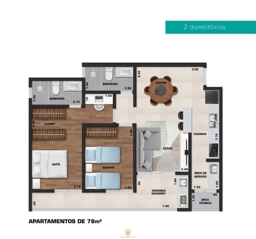 ? Plantas com 1 ou 2 suítes, de 78 m² a 123 m²