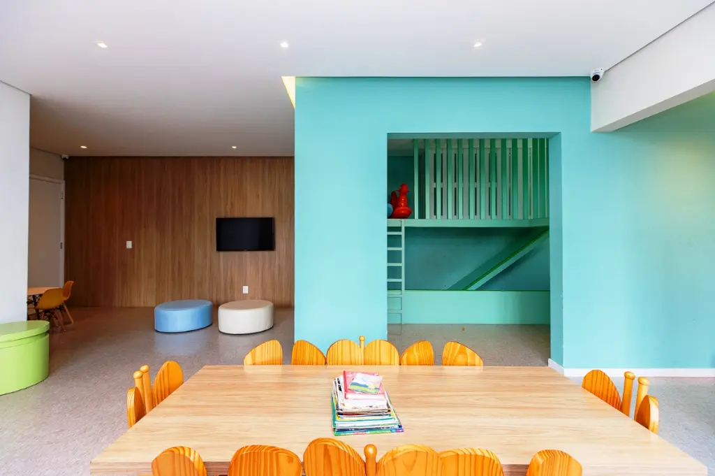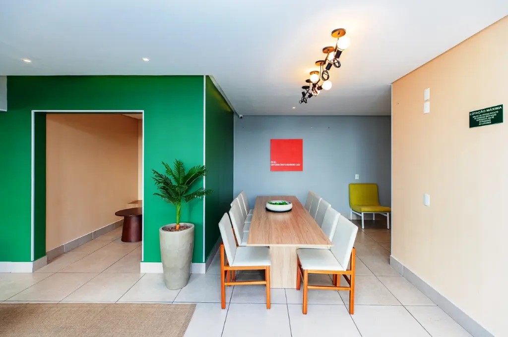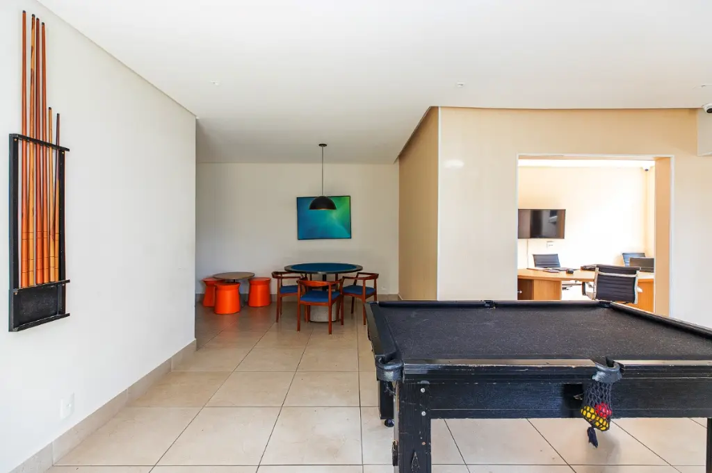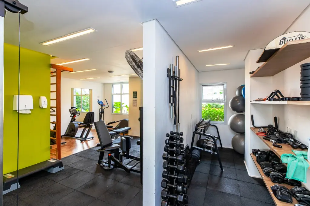 O condomínio oferece infraestrutura completa de lazer e segurança, incluindo portaria 24 horas, piscinas adulto e infantil, área gourmet com churrasqueira, academia equipada, salão de festas, playground, quadra poliesportiva, pet place, bicicletário, mercadinho, coworking e salão de jogos, além de áreas verdes para caminhadas e convivência.