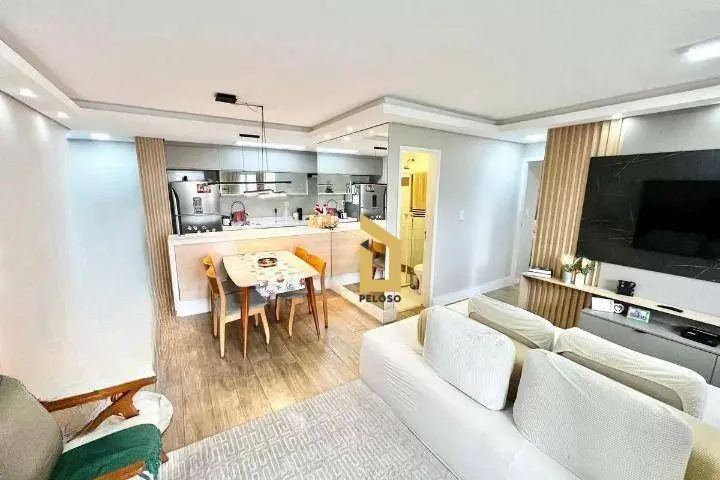 2 dormitórios amplos sendo 1 suíte, 2 banheiros, cozinha conceito aberto, sala ampla e integrada à varanda e lavanderia. Dormitórios com armários planejados, cozinha planejada. Apartamento com espaço amplo e bem distribuído.