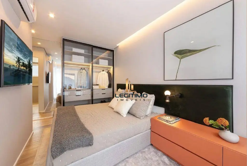 Studio com 2 dormitórios, 1 vaga de garagem, banheiro com ventilação e infraestrutura completa para ar condicionado.