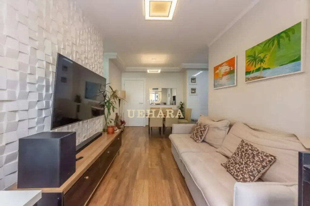 Apartamento de 68m², com 02 dormitórios e 01 suíte, banheiro social, sala ampla com varanda gourmet e churrasqueira, ambientes com móveis planejados, proporcionando conforto e excelente aproveitamento do espaço.