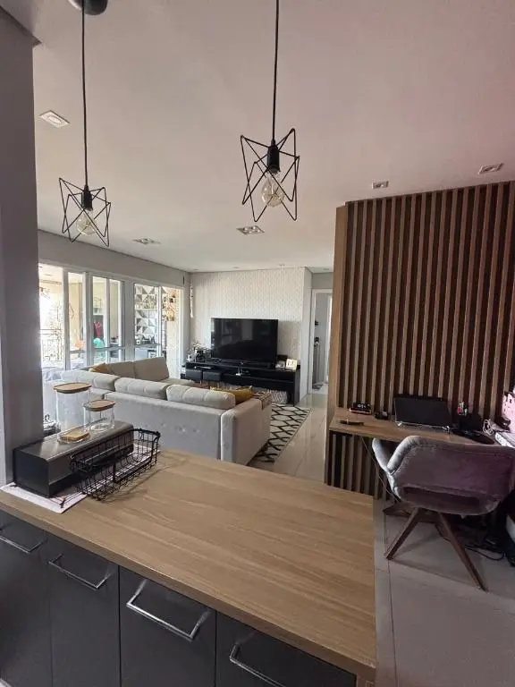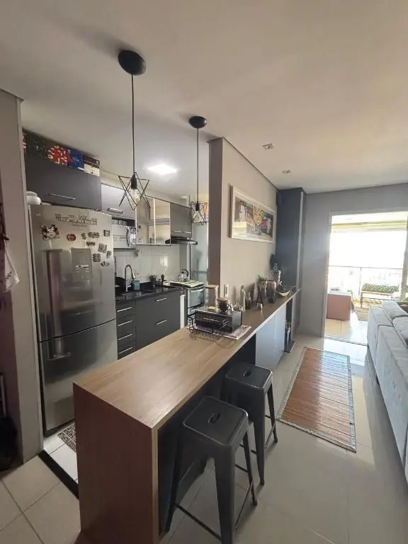 Com 3 dormitórios sendo 1 suíte, o 3° quarto foi revertido para sala ampliada podendo ser facilmente revertida, sala para 2 ambientes com uma maravilhosa varanda gourmet, banheiro social, cozinha com móveis planejados e área de serviço. Os dormitórios possuem armários planejados.